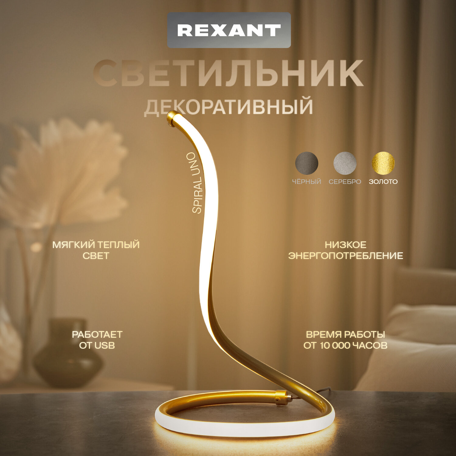 СохранитьСветильник настольный декоративный, LED лампа спираль REXANT, USB интересное: