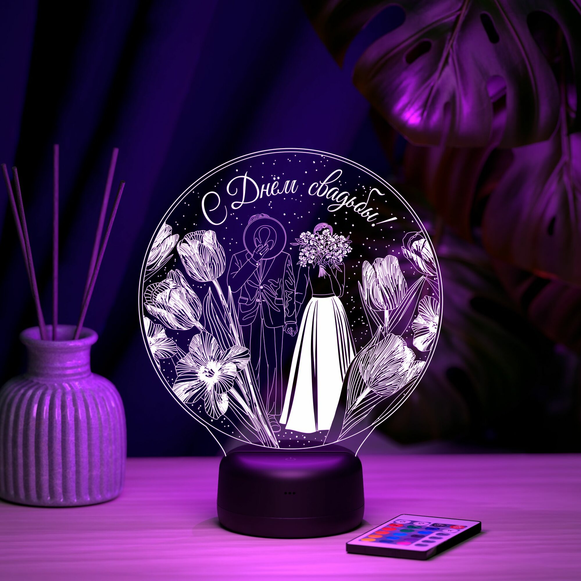 Купить Ночник "Свадебная пара в цветах" С Днем Свадьбы