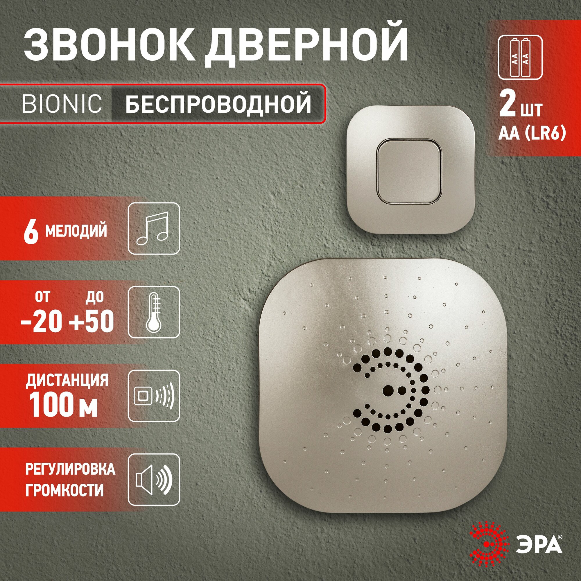 Звонок дверной ЭРА BIONIC Silver беспроводной серебристый 6 мелодий, Б0017749