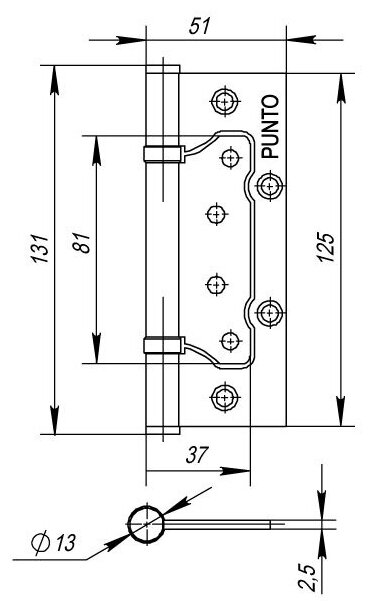 Петля универсальная без врезки Punto 200-2B 125x2,5 PB латунь