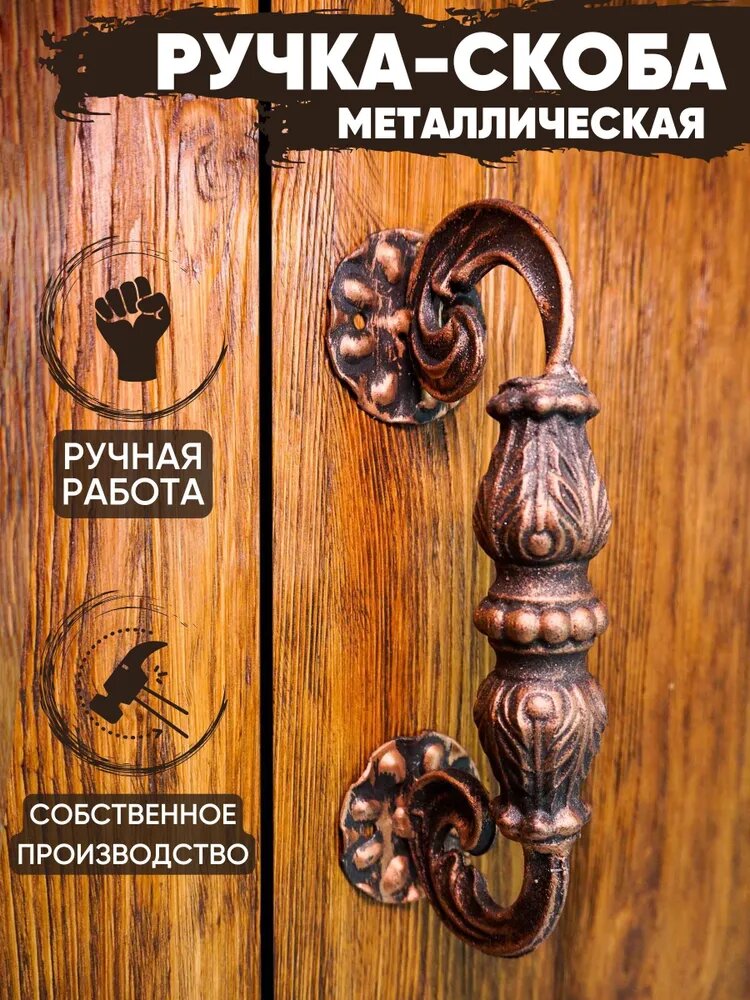 Купить Ручка-скоба дверная кованая "Ажур" (медный)/ ручка дверная для входной двери/ручка кованая на калитку/ дверная ручка