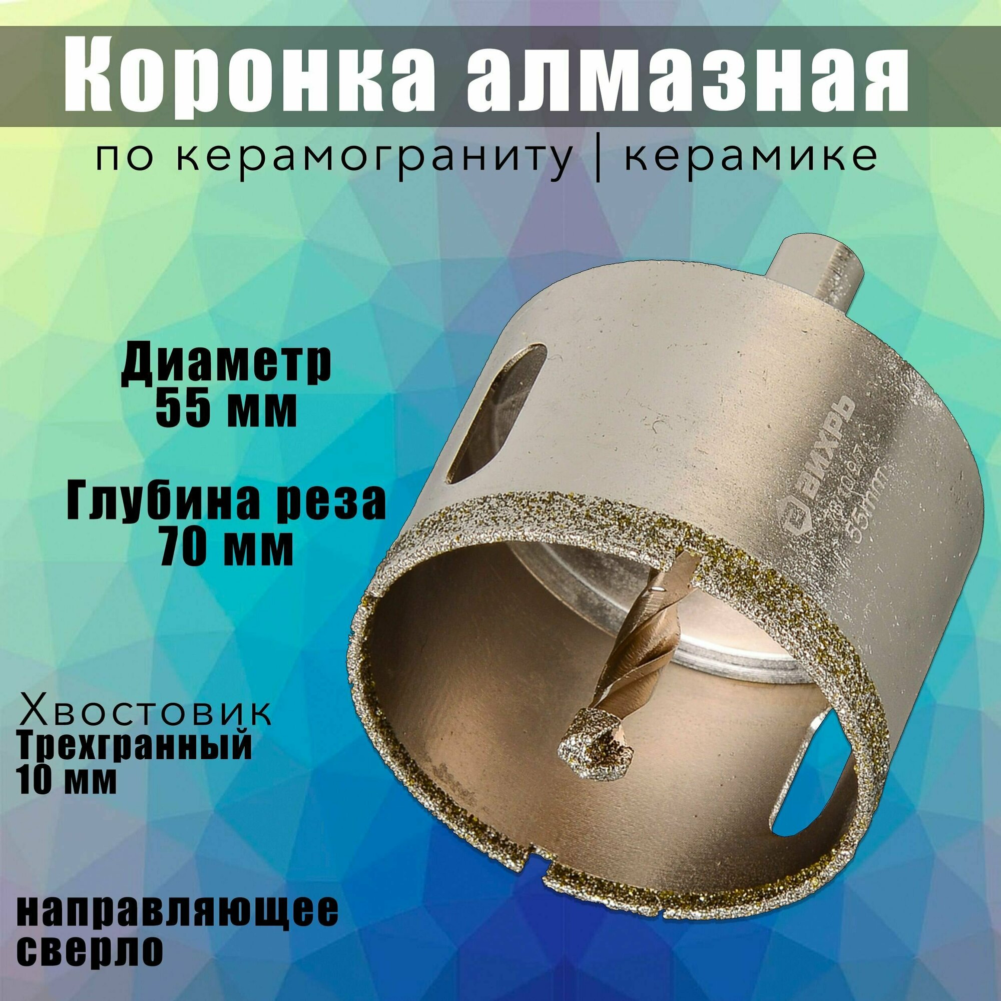 СохранитьКоронка алмазная по керамограниту/керамике вихрь 55 мм интересное: