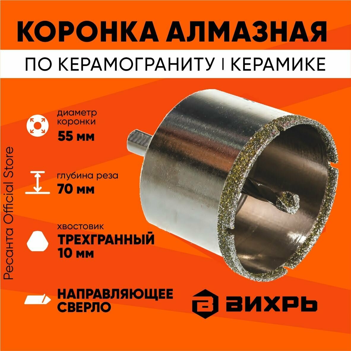 Купить Коронка алмазная по керамограниту/керамике вихрь 55 мм