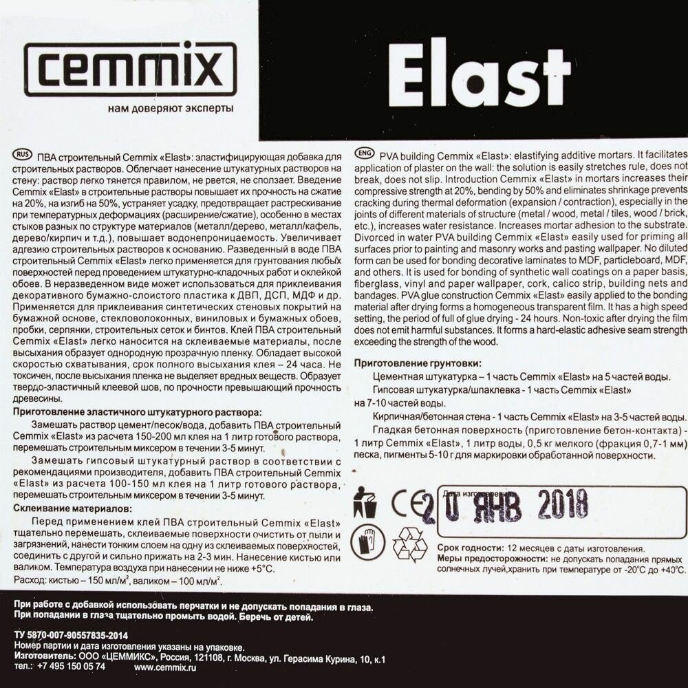 CEMMIX Эласт клей ПВА строительный (3кг) / CEMMIX Elast клей ПВА строительный эластифицирующая добавка (3кг) интересное: