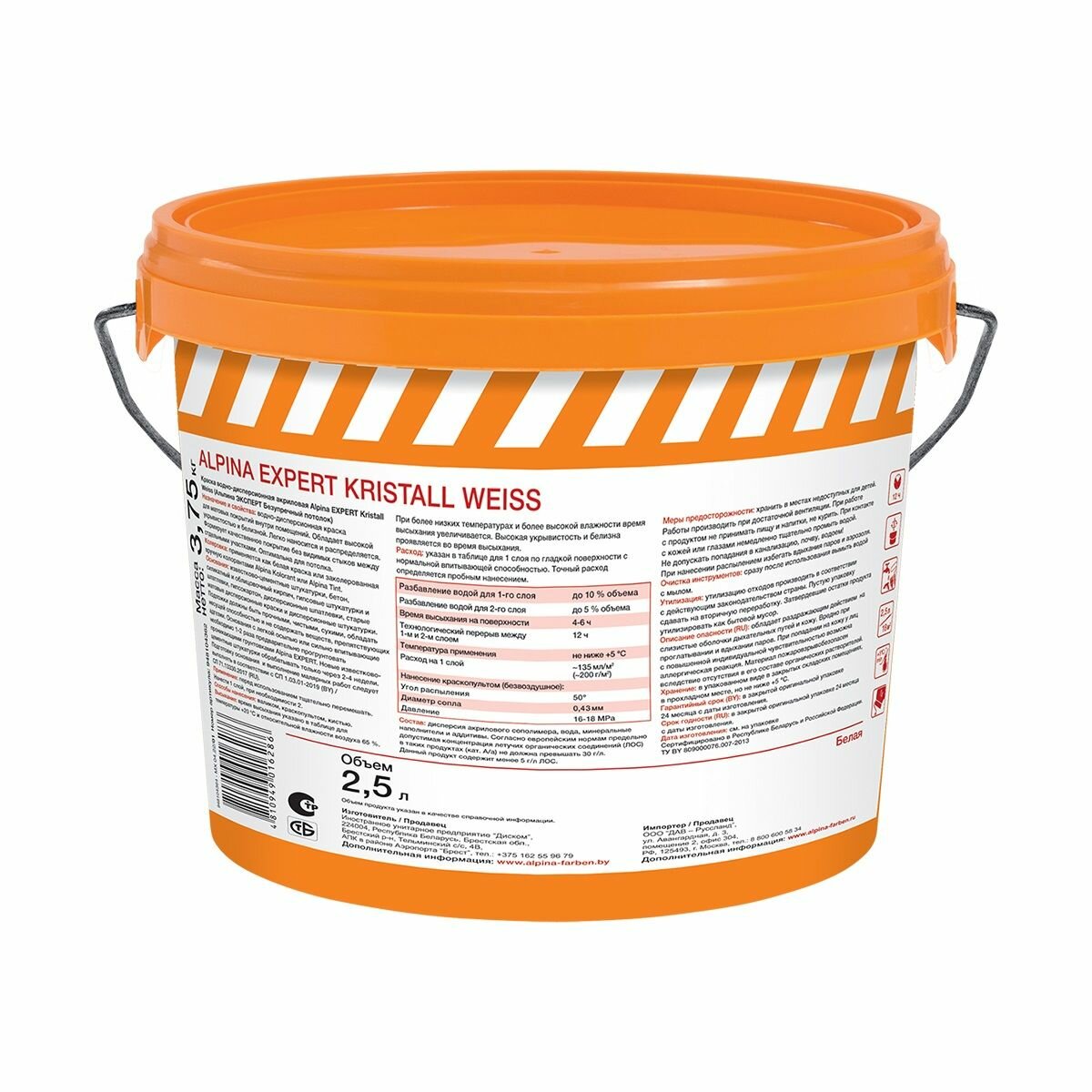 Купить ALPINA EXPERT KRISTALL WEISS краска для внутренних работ белая, безупречный потолок (2,5л) 948104362