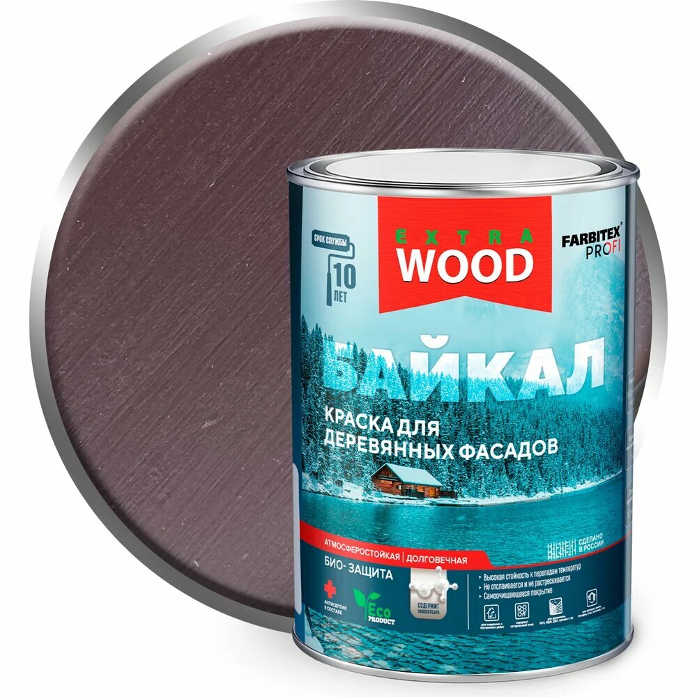 Краска Farbitex Profi Wood Extra Байкал для деревянных фасадов и интерьеров, княженика, 0,75 л