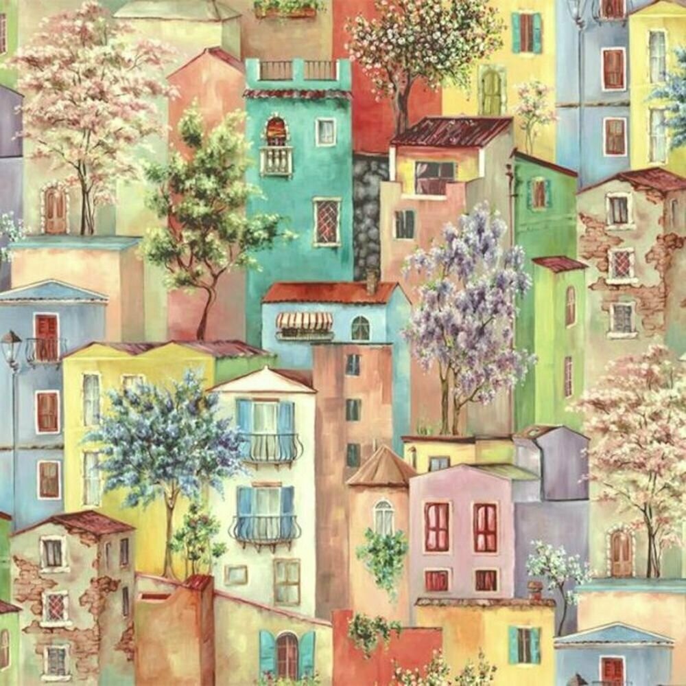 Обои Винил на флизелине 60371-03 Profi Deco Домики персиково-голубые 1,06 м., 10 м.
