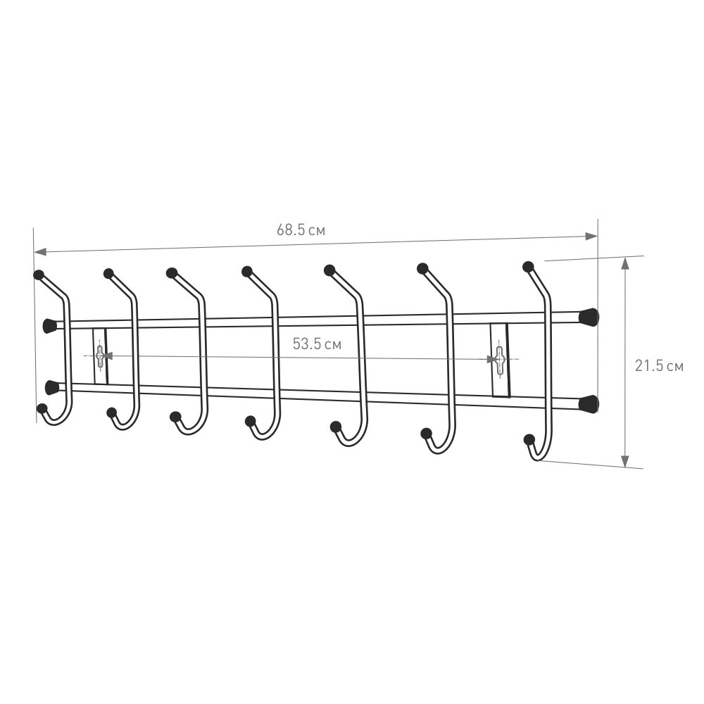 Вешалка настенна Ника 7 крючков 685х215х85мм матовый серый (внт7/мс) .