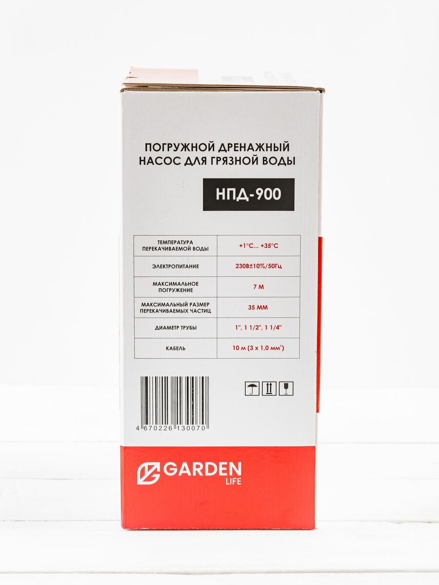 Купить Насос погружной дренажный для грязной воды Garden Life 900Вт, 233 л/мин, напор 9 м