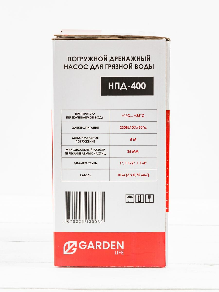 Купить Насос погружной дренажный для грязной воды Garden Life 400Вт, 125 л/мин, напор 5 м
