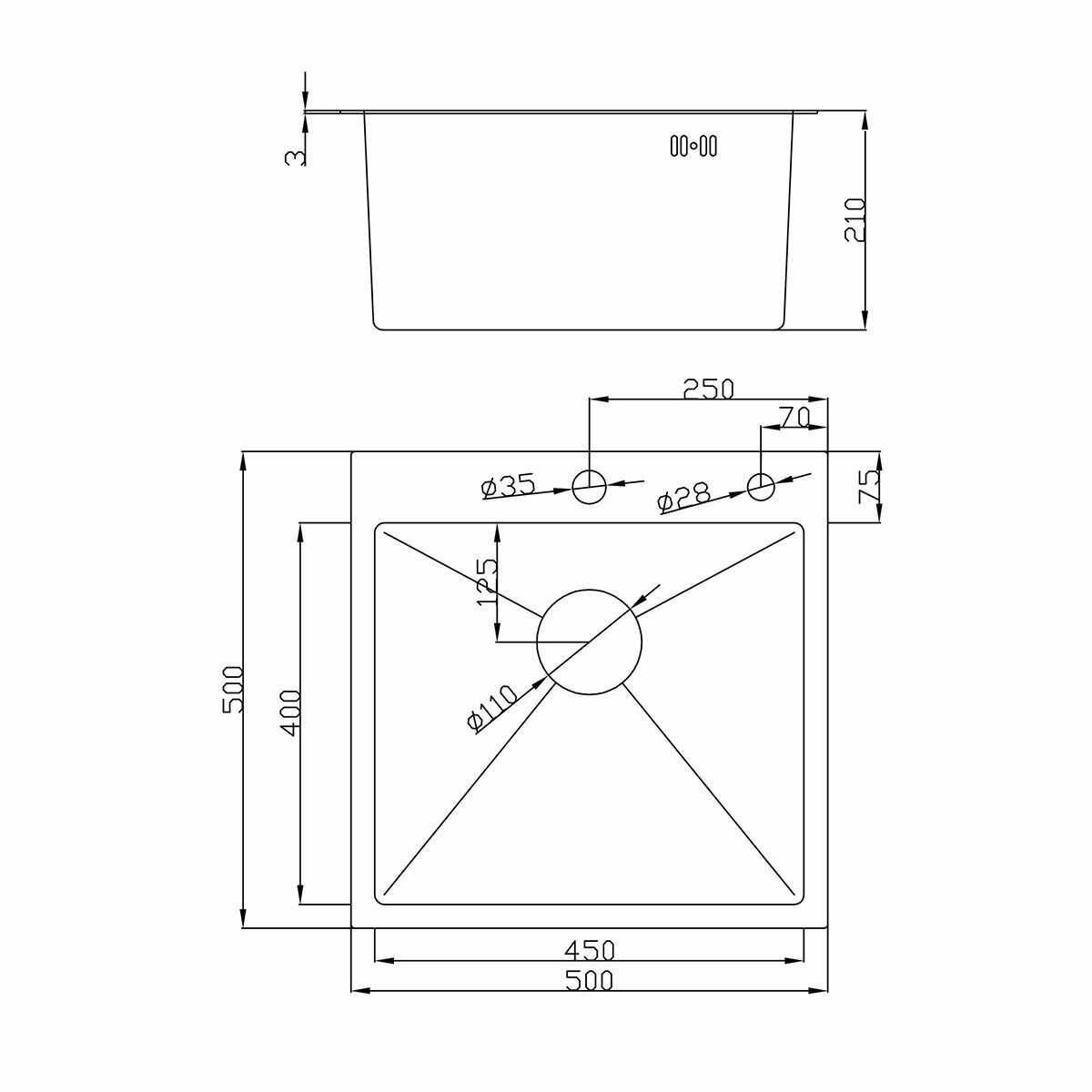 | Форма мойки | квадратная |