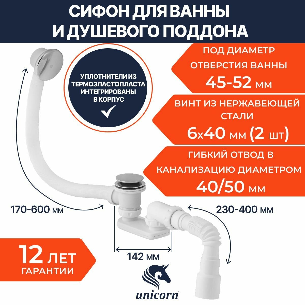 Сифон для ванны и глубокого поддона Unicorn S122E