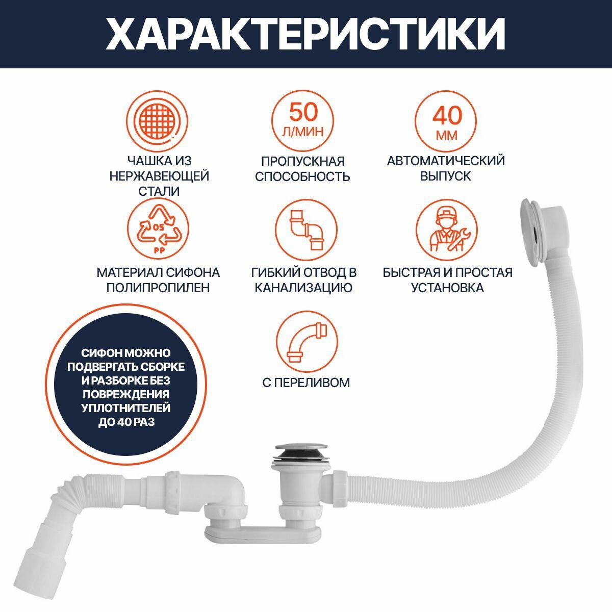 ИС.110428 Unicorn Сифон для ванны и глуб. поддон. easyopen, хром.перел,чашка из нерж. ст, г.т.40х40 интересное: