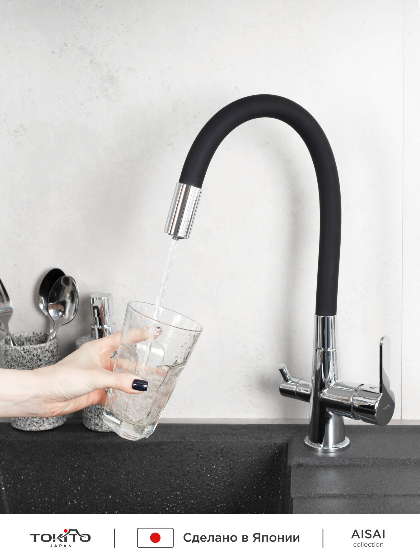 Смеситель для кухни с гибким изливом и фильтром питьевой воды TOKITO TOK-AIS-1018 серия AISAI черный/ интересное: