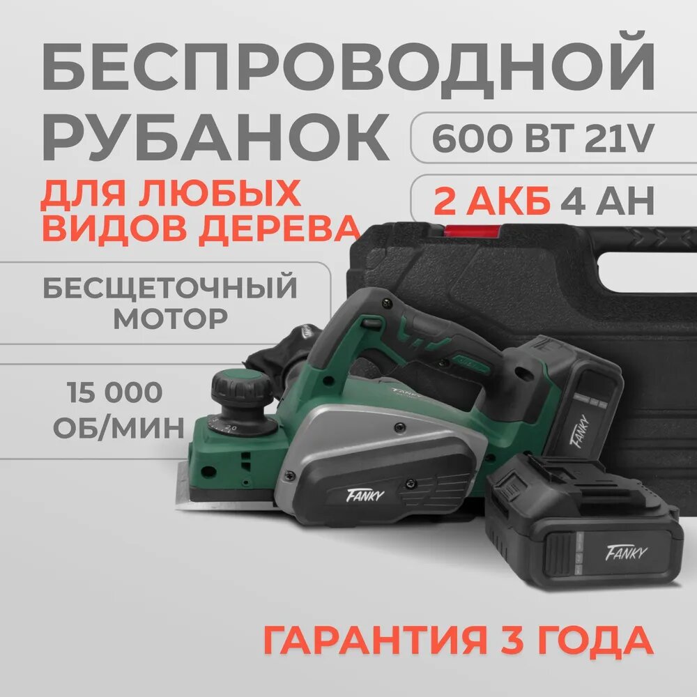 Рубанок аккумуляторный Fanky с пылесборником беспроводной 600 вт 82мм 2 мм 2 АКБ 4 А/ч в кейсе