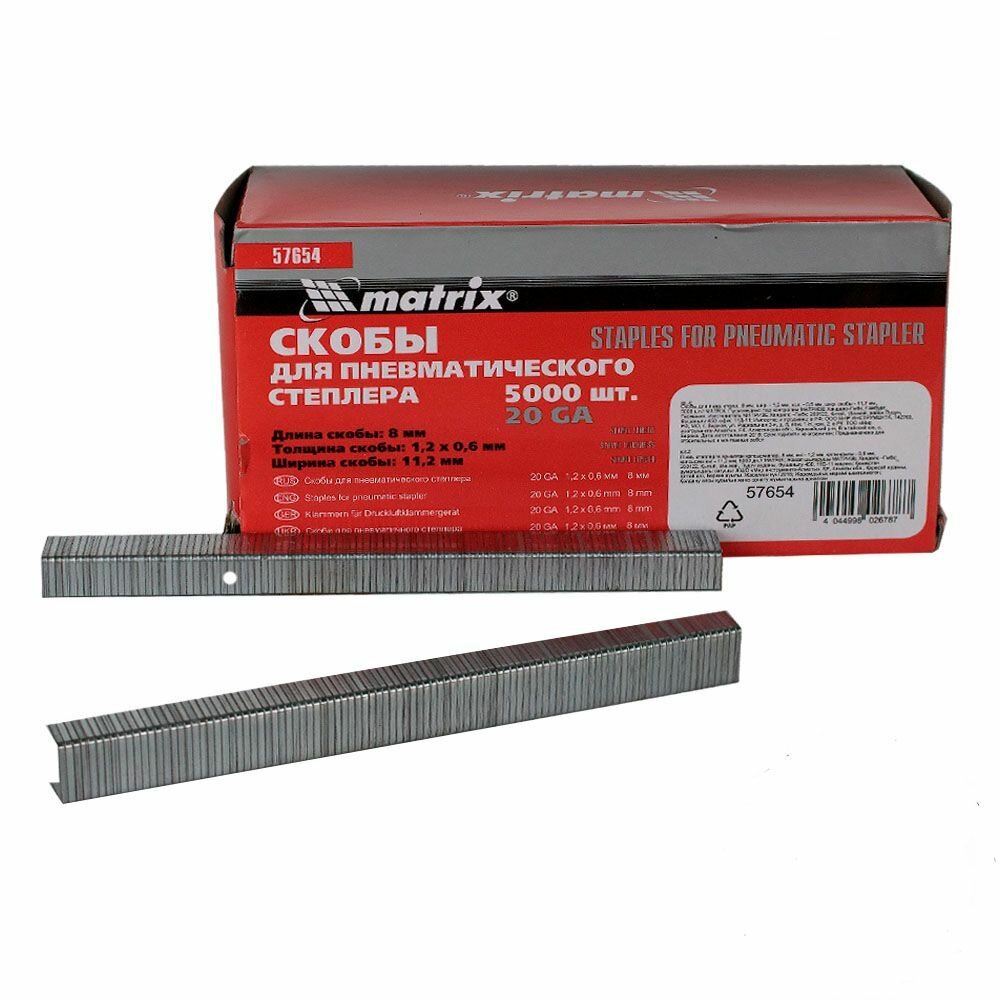 Скобы 20GA для пневматического степлера, 8 мм, ширина 1.2 мм, толщина 0.6 мм, ширина скобы 11.2 мм, 5000 шт Matrix интересное: