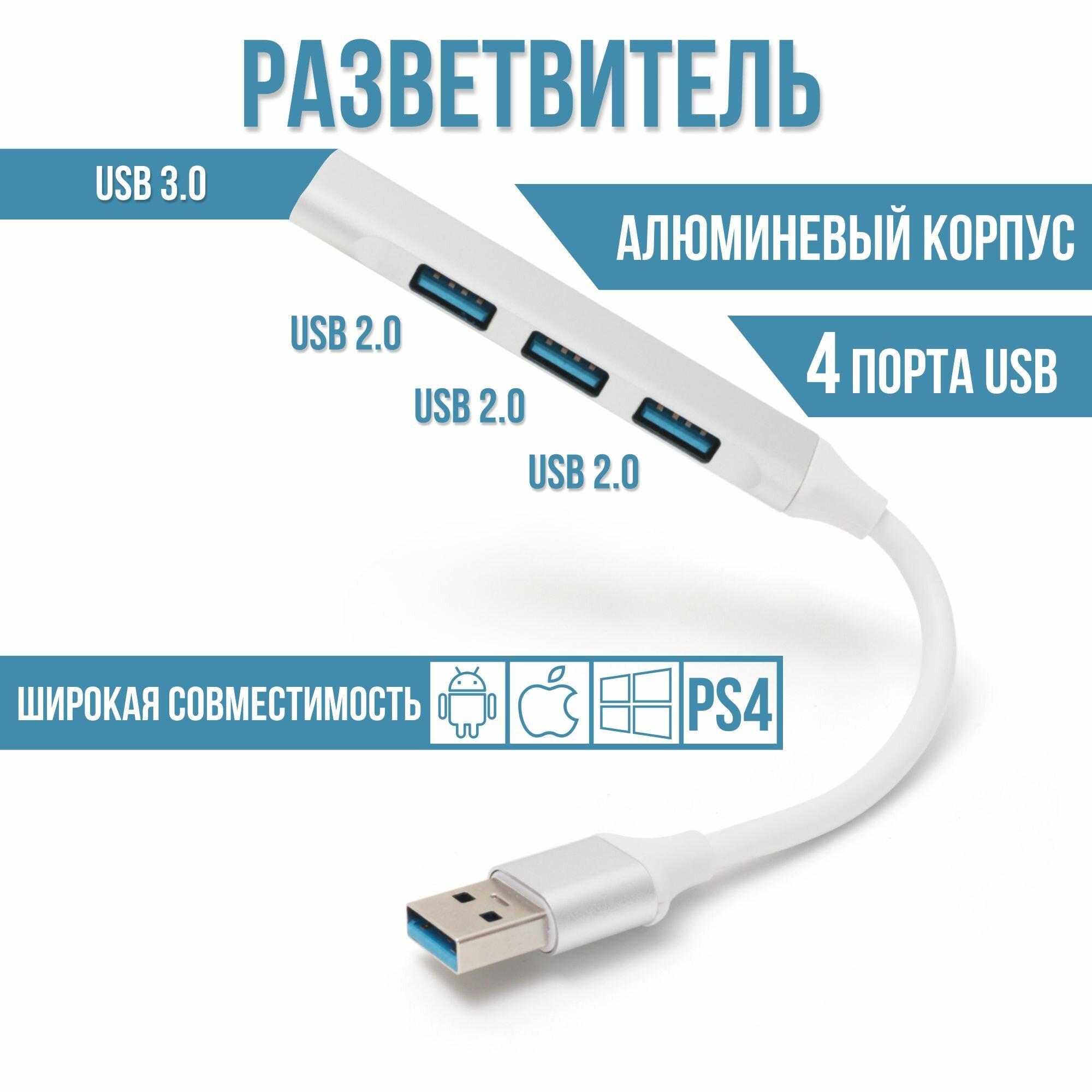 Купить USB HUB 3.0 на 4 порта, USB концентратор, USB разветвитель, 3х USB 2.0 + 1 USB 3.0, юсб хаб 3.0 для периферийных устройств