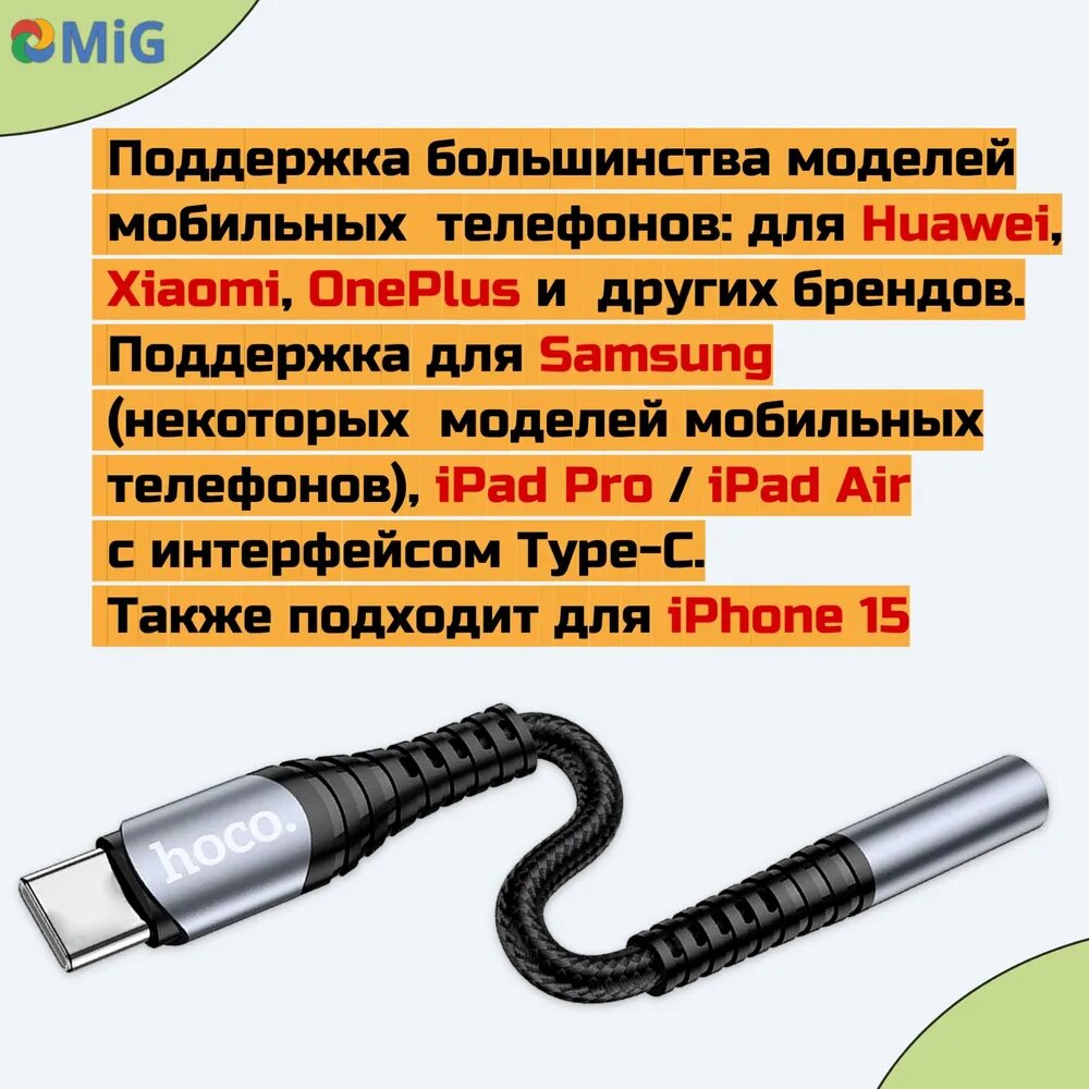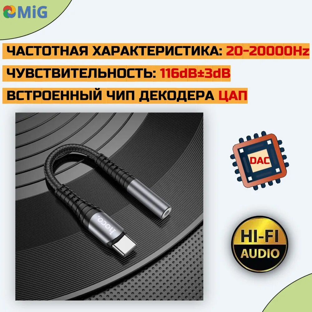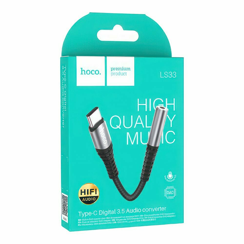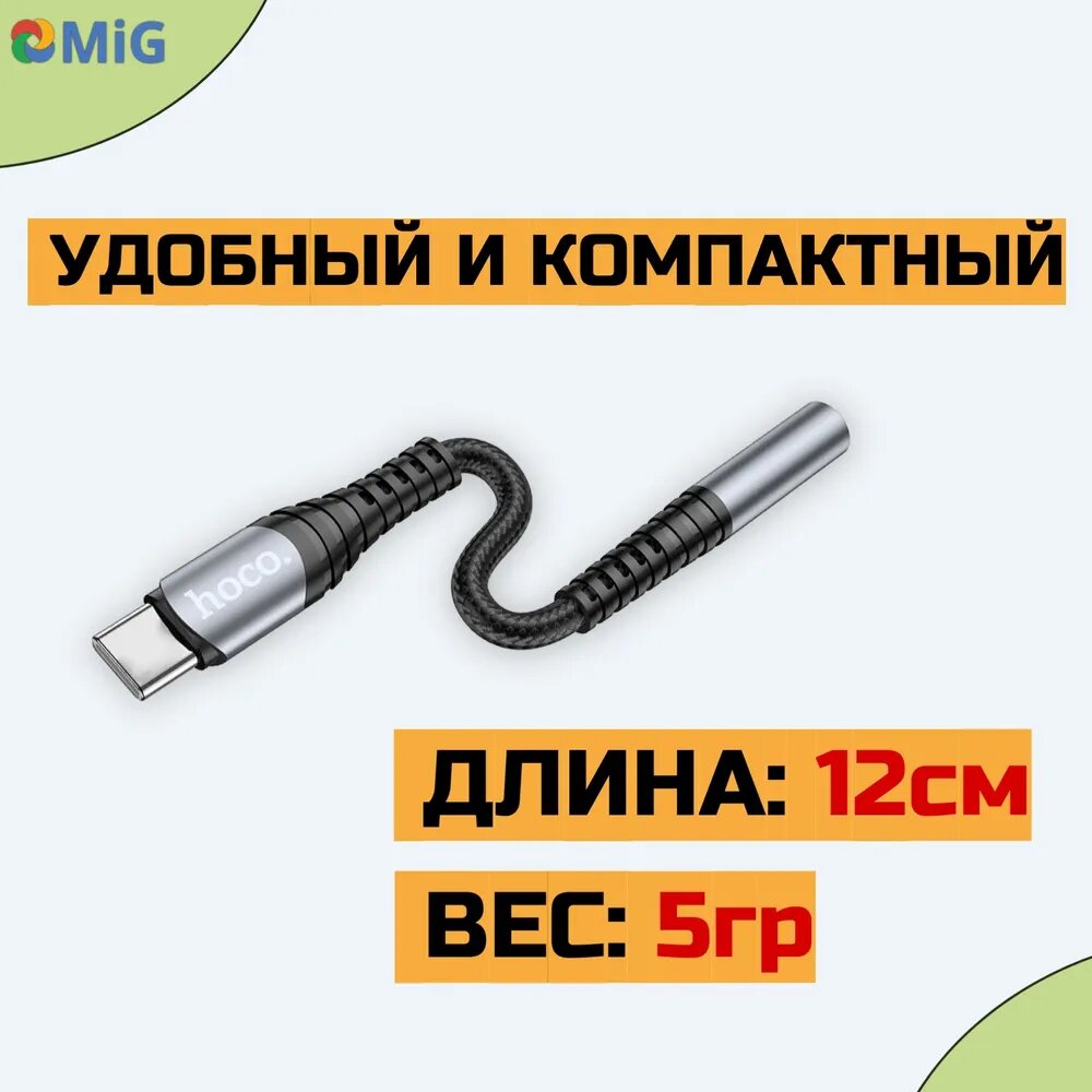 Аудиоадаптер-переходник HOCO LS33 с TYPE-C на Jack 3.5mm (TRRS, Female),0.115 метров черный с серым, для подключения наушников интересное: