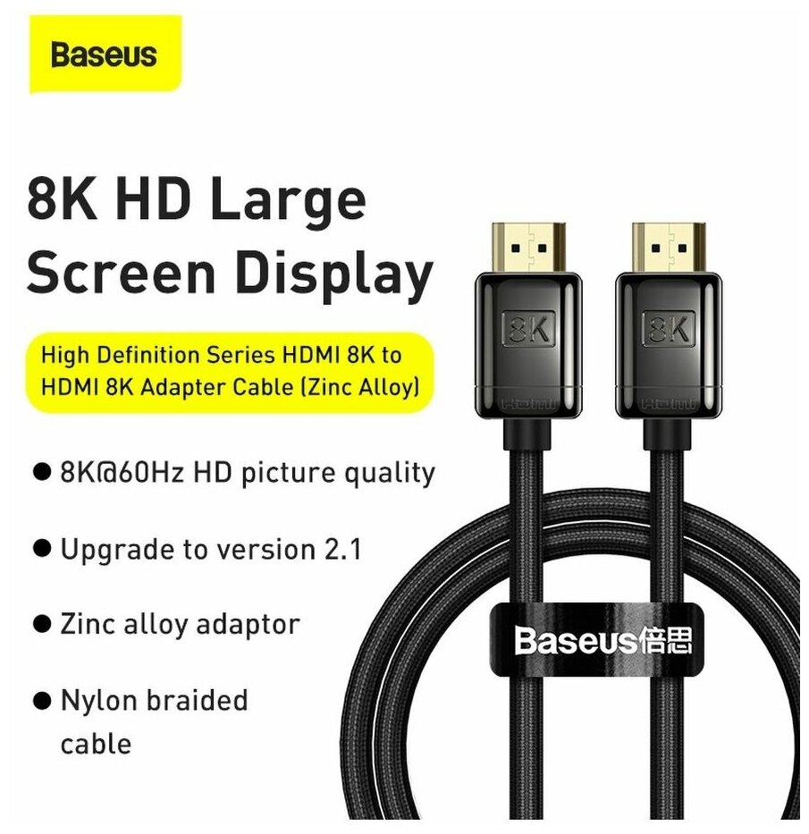 HDMI-кабель Baseus High definition Series CAKGQ-L01 HDMI 8K To HDMI 8K Adapter Cable black, длина 3 м