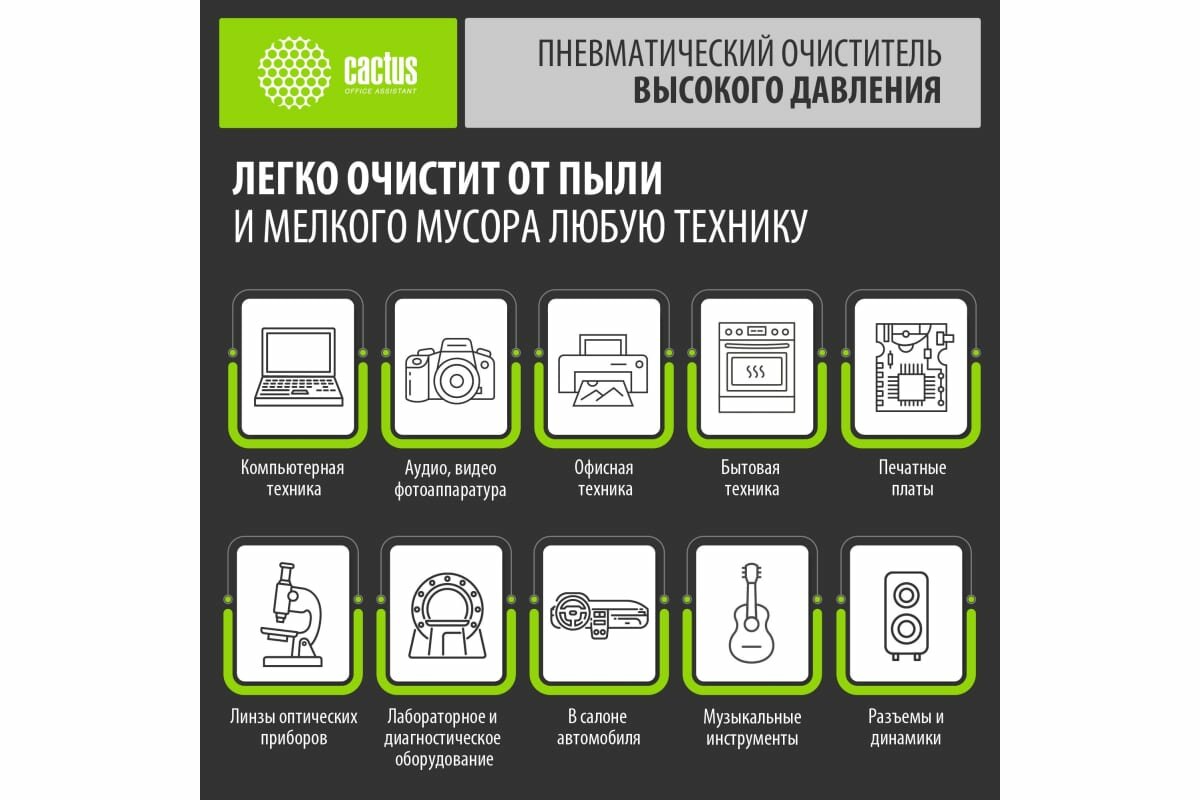 Пневматический очиститель Cactus для очистки техники 750мл интересное: