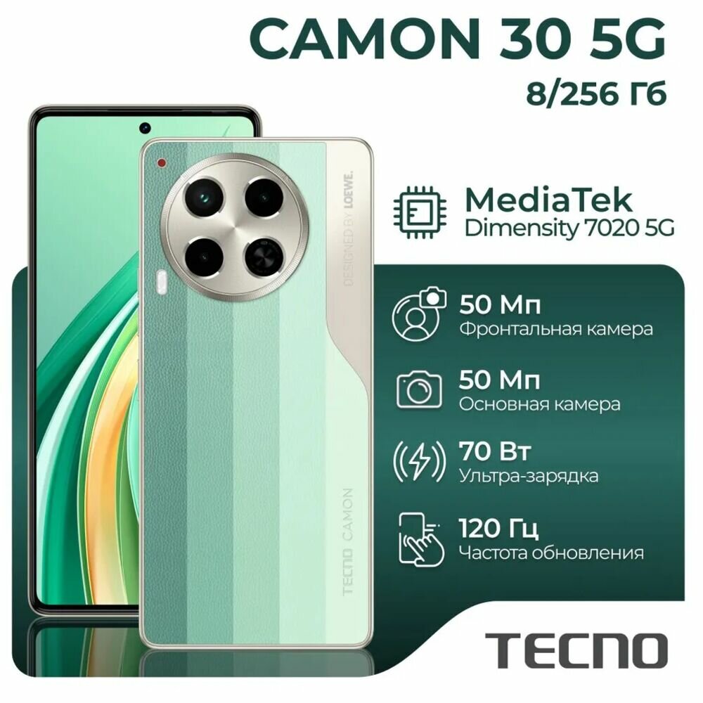 Мобильный телефон Tecno Camon 30 5G 8/256 ГБ Lake Green, зеленый