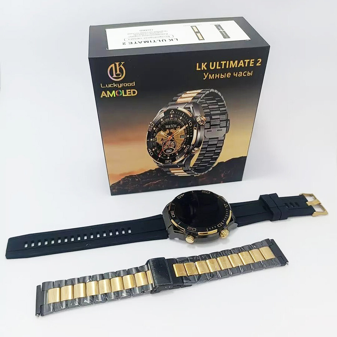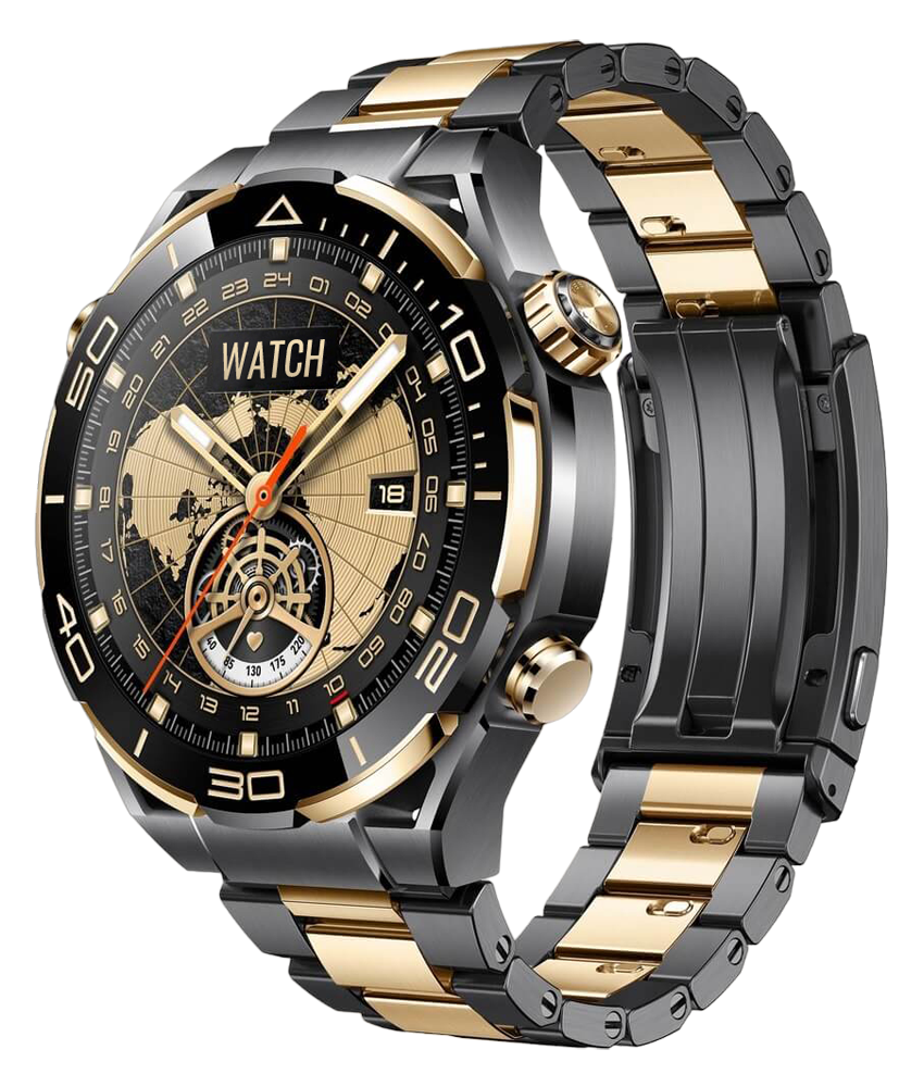 Смарт часы мужские GoodSmart Ultimate 2 чёрно-золотого цвета, AMOLED экран