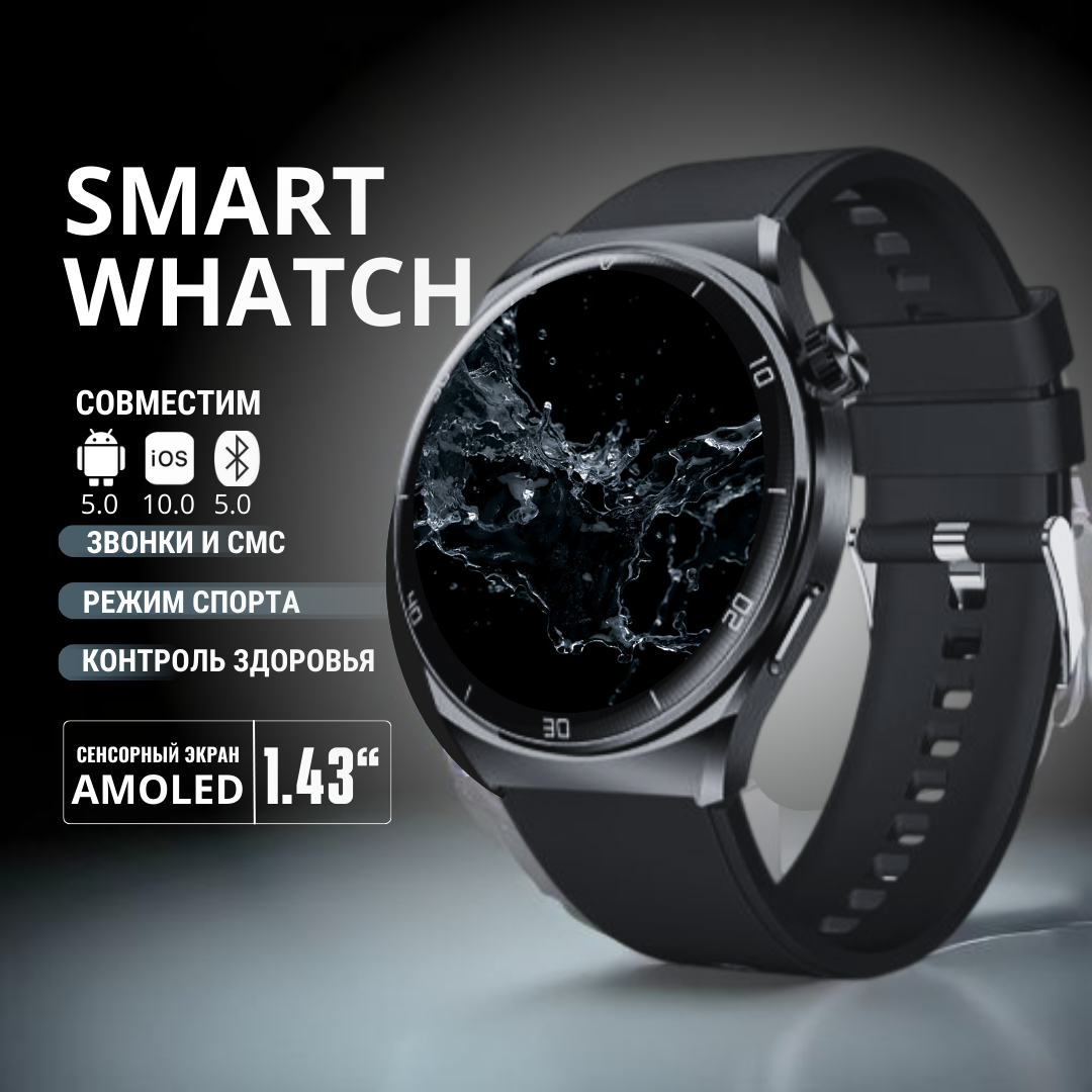 Смарт часы мужские GoodSmart Ultimate 2 чёрно-золотого цвета, AMOLED экран