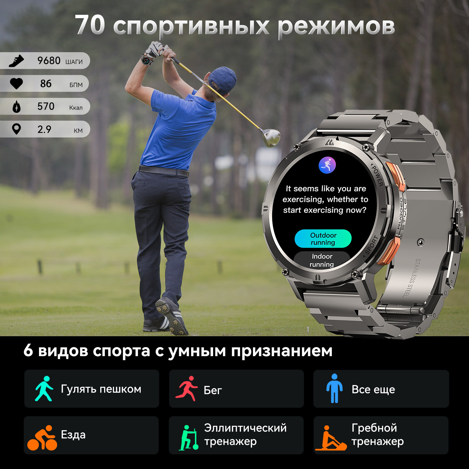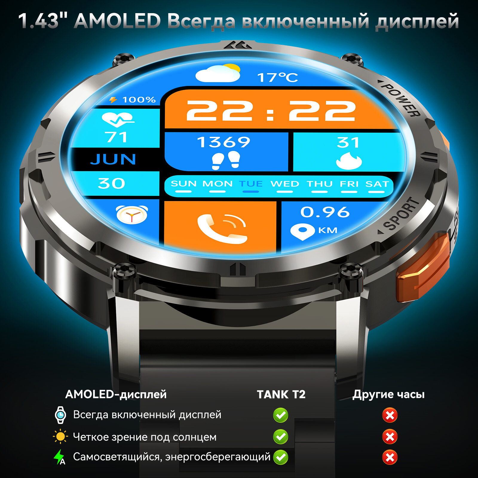 Kospet TANK T2 умные/смарт часы Мужские часы военного образца, которые поддерживают погружения на глубину до 50 метров и работают в режиме ожидания до 50 дней.С металлическим браслетом. интересное: