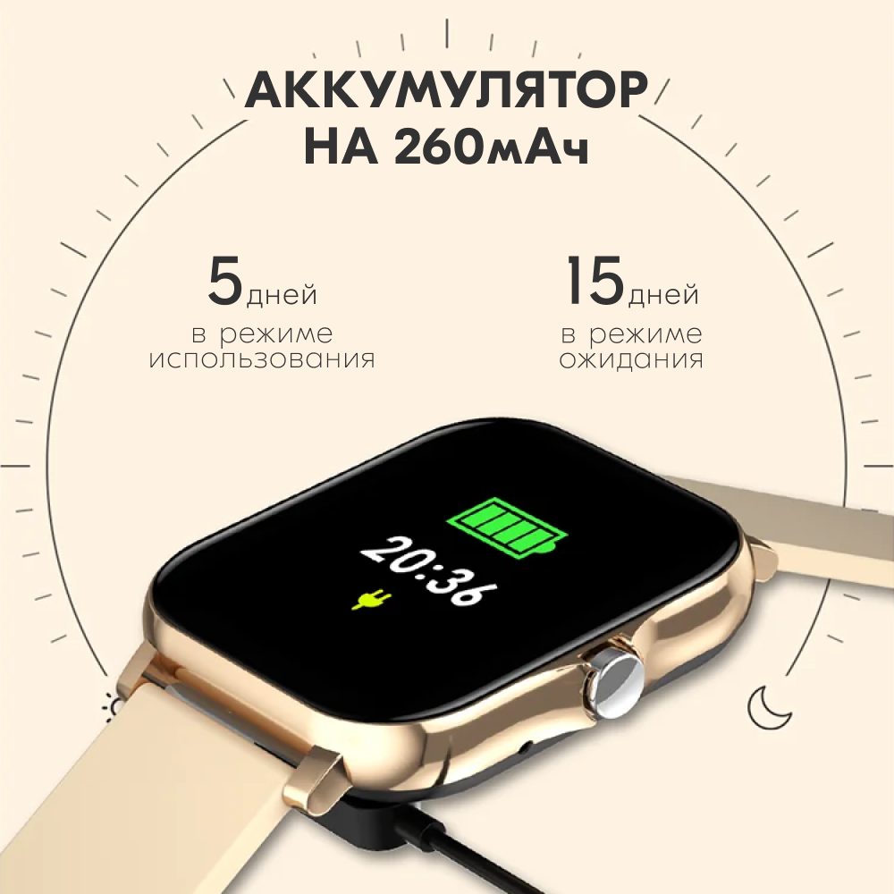 Умные часы ZDK GT20 с силиконовым ремешком, цвет золотистый, 1.69 дюйма интересное: