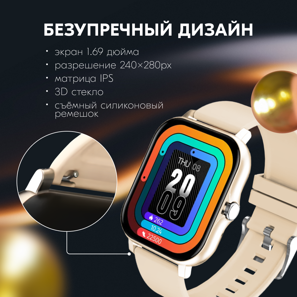 Купить Умные часы ZDK GT20 с силиконовым ремешком, цвет золотистый, 1.69 дюйма