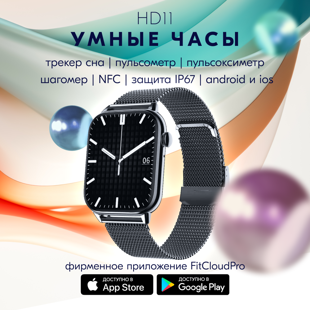 Умные часы ZDK HD11, с сенсорным экраном, цвет черный, 1.85 дюйма, с металлическим ремешком интересное:
