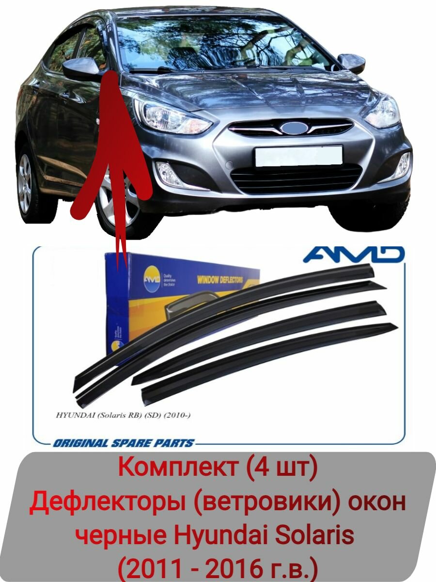 Дефлекторы Окон Black (К-Т 4Шт) Hyundai Solaris 4D (10-) Amddk164 AMD арт. AMDDK164