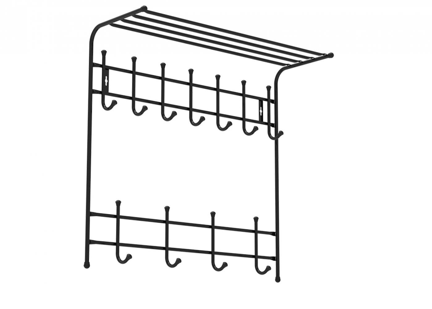 Вешалка настенная с полкой на 11 крючков, 74×25×74,5 см, цвет чёрный