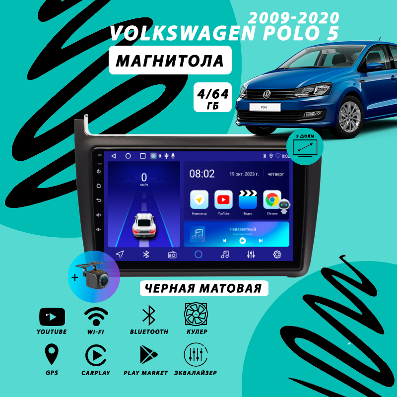 Магнитола Volkswagen Polo (2009-2020) 4Гб+64Гб/черный матовый/Android/Carplay/кулер/Wi-Fi/Bluetooth интересное:
