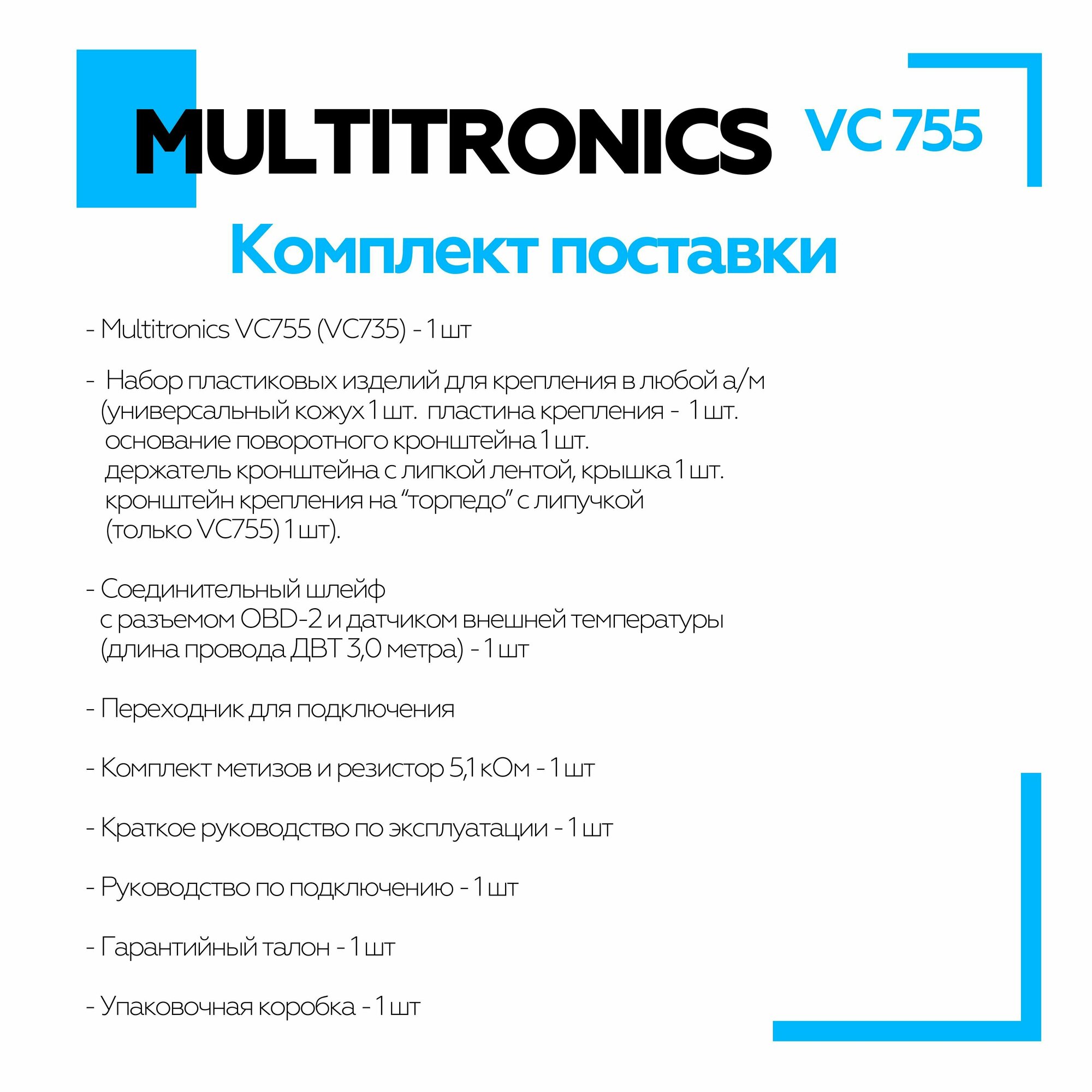 | Комплектация | Бортовой компьютер MULTITRONICS VC-755 |