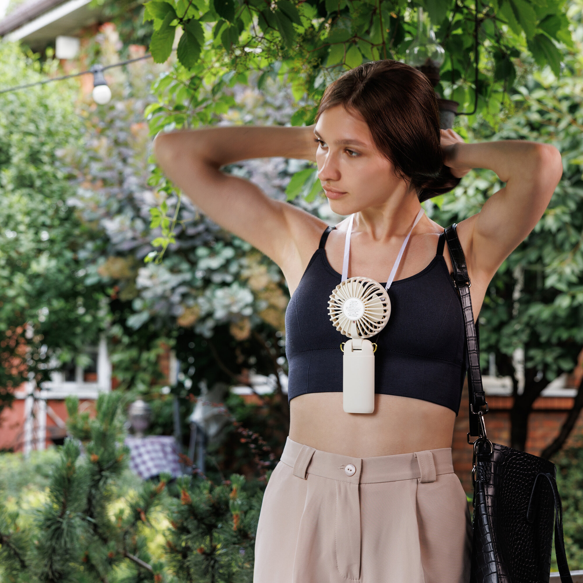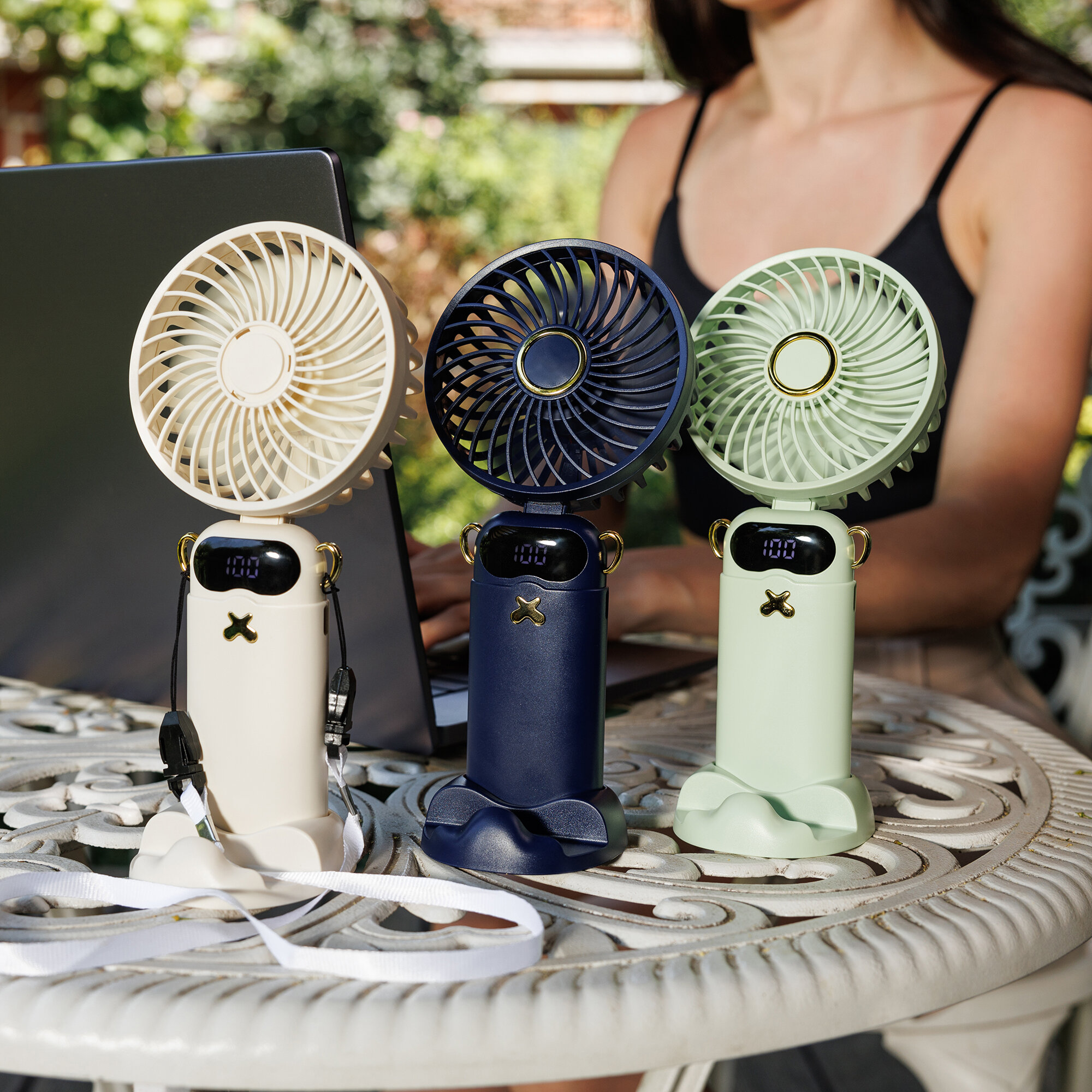 Купить Вентилятор, белый, 6 режимов, регулировка наклона, дисплей, ремешок для переноски, подставка, вентилятор настольный