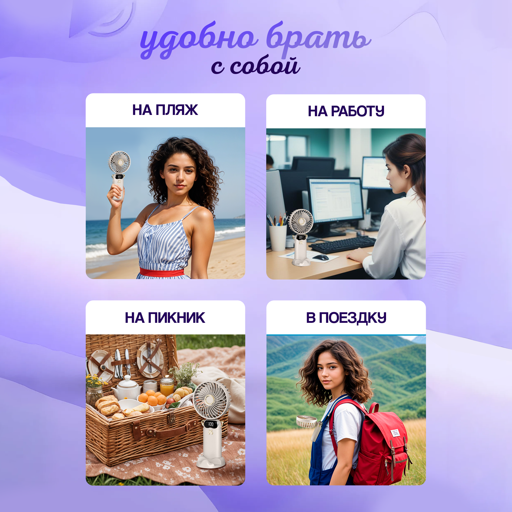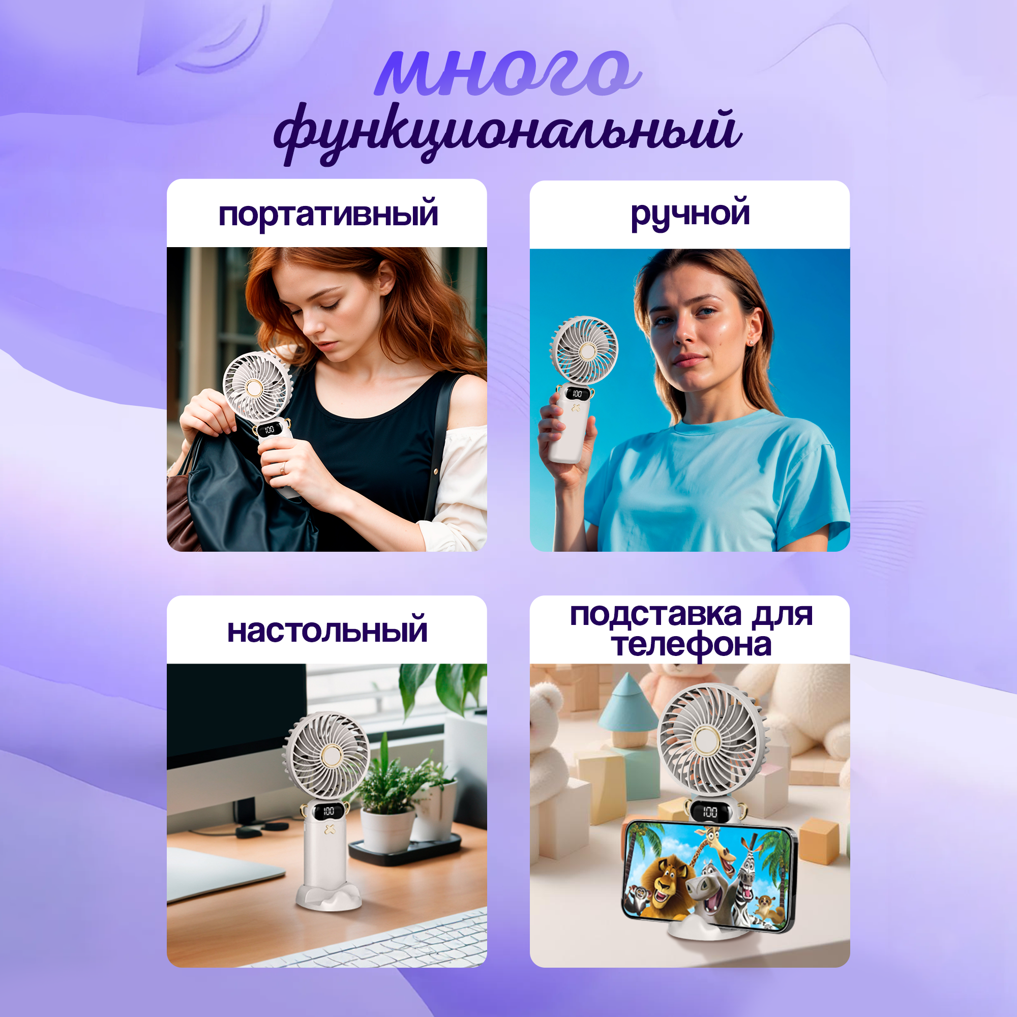 Вентилятор, белый, 6 режимов, регулировка наклона, дисплей, ремешок для переноски, подставка, вентилятор настольный интересное:
