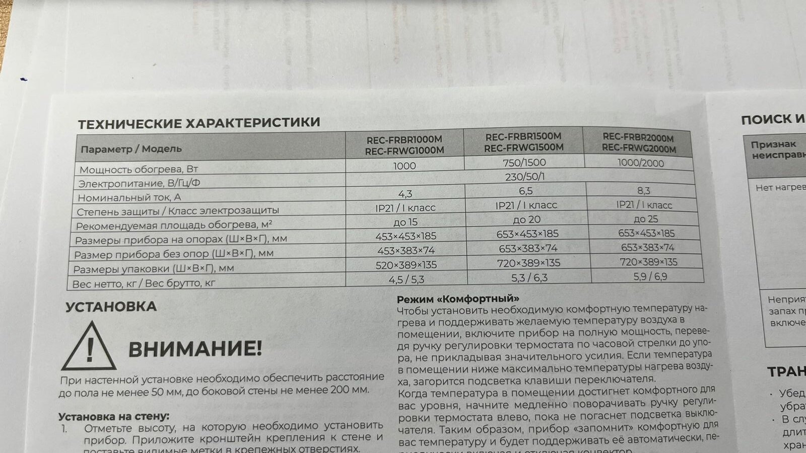 | Макс. мощность обогрева | 3000 Вт |