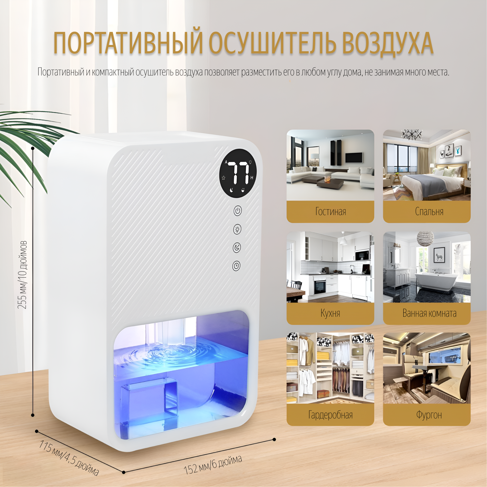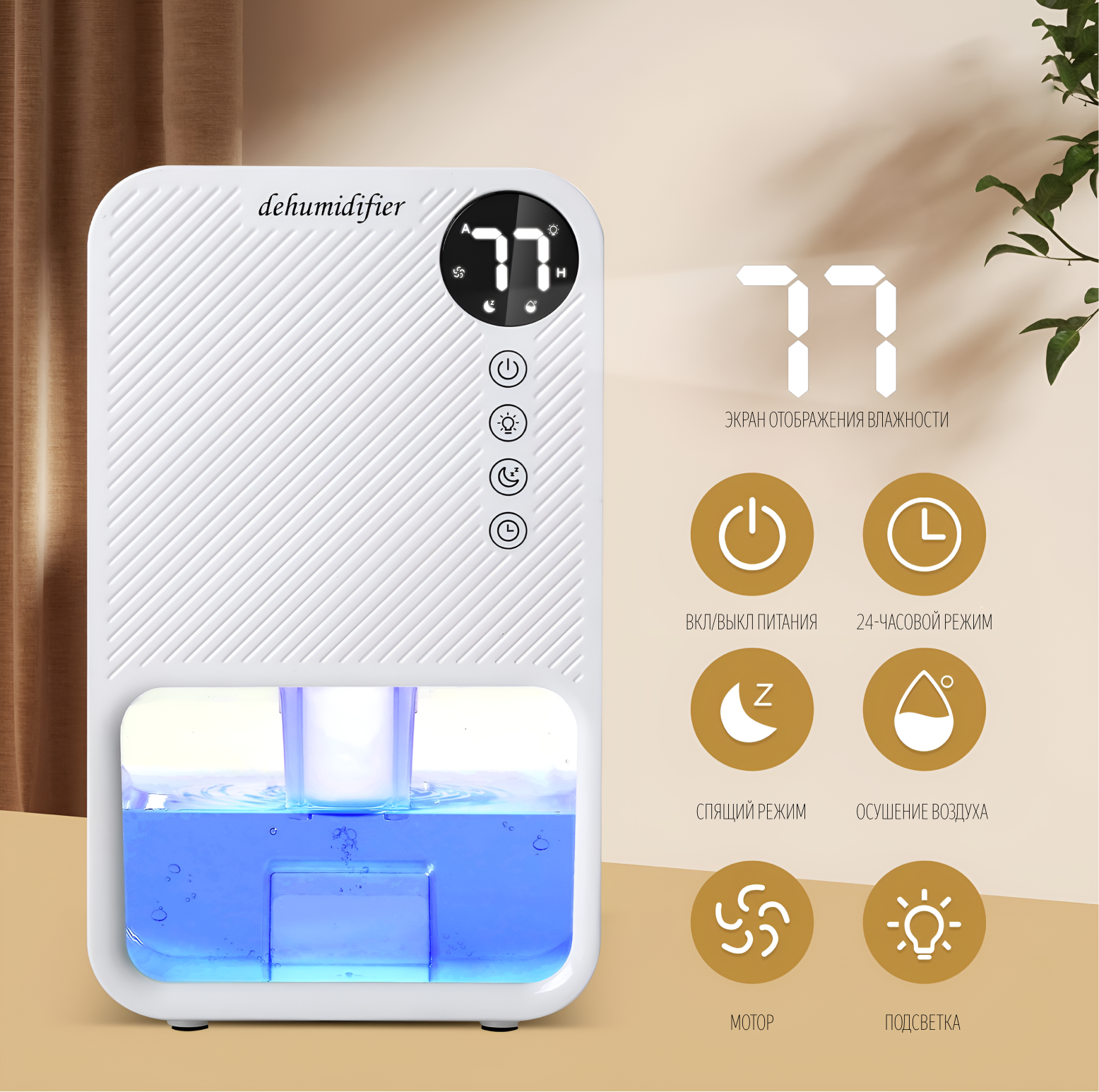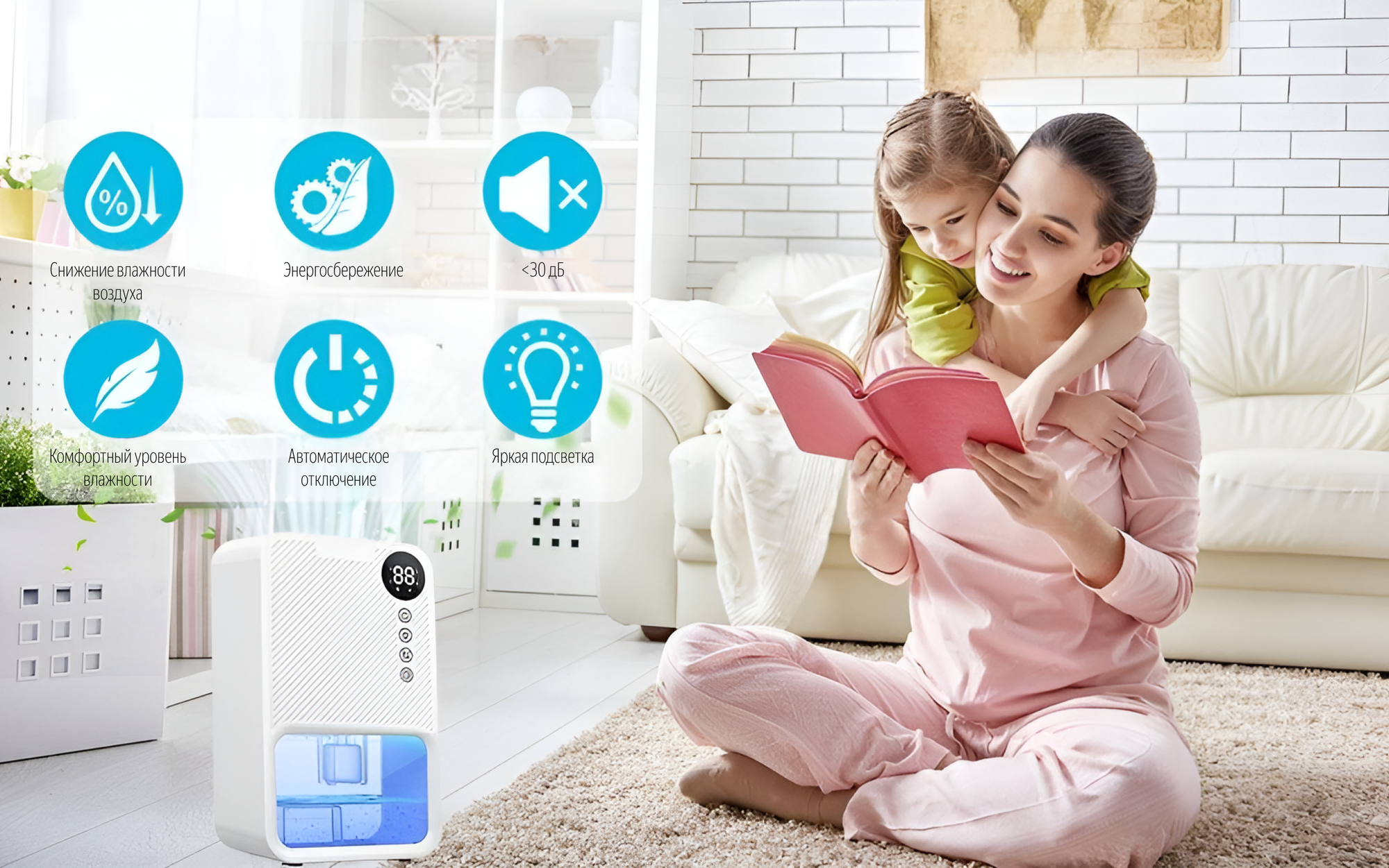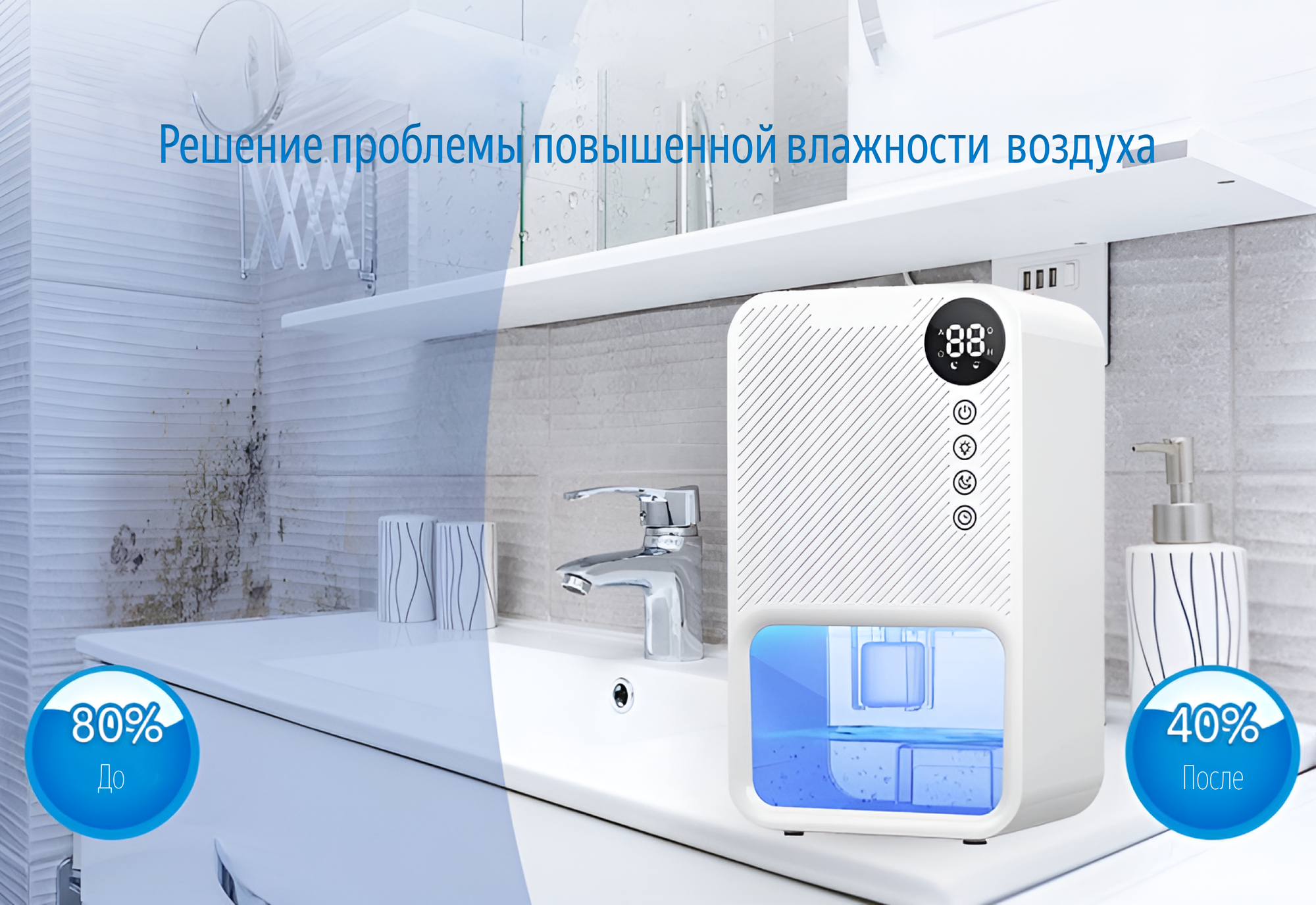 Осушитель воздуха WB-EDH22-001, белый, для ванной комнаты, спальни, влагозащищенный