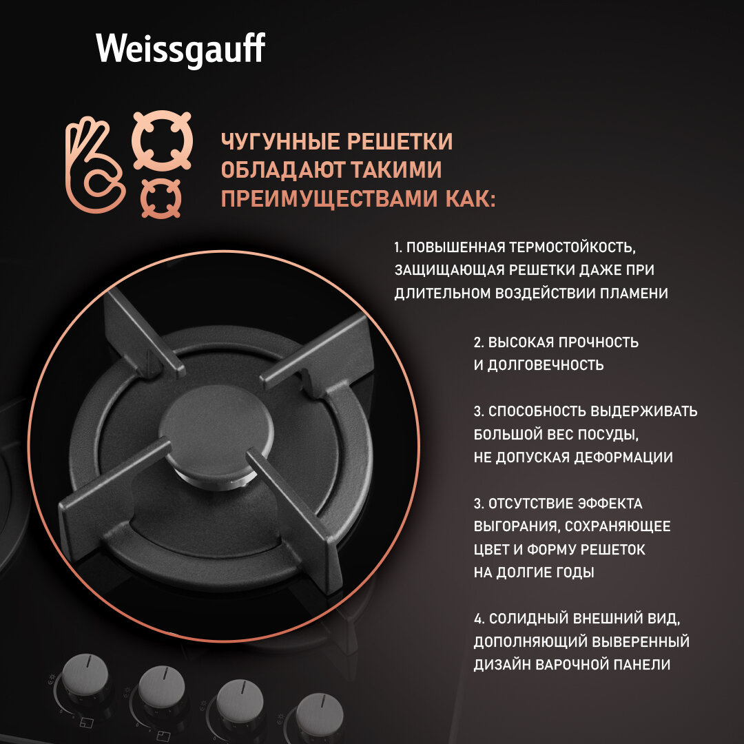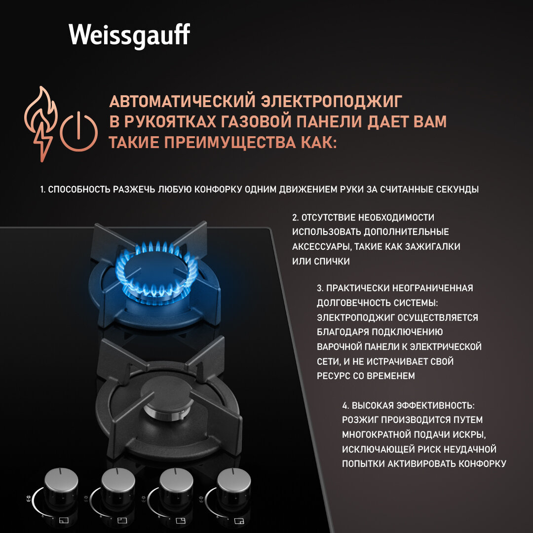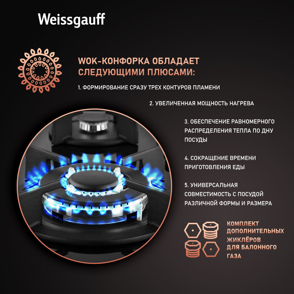Варочная панель Weissgauff HG 640 BGH, Ширина 60 см, WOK-конфорка, Авто электроподжиг, Чёрное закаленное стекло интересное: