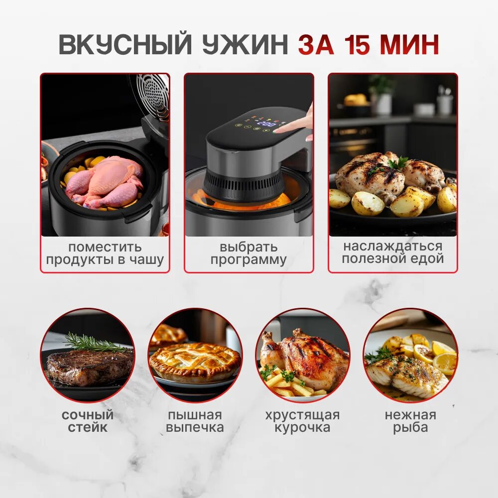 Аэрогриль электрический KING AG / 4,0л / 8 автоматических программ / интересное: