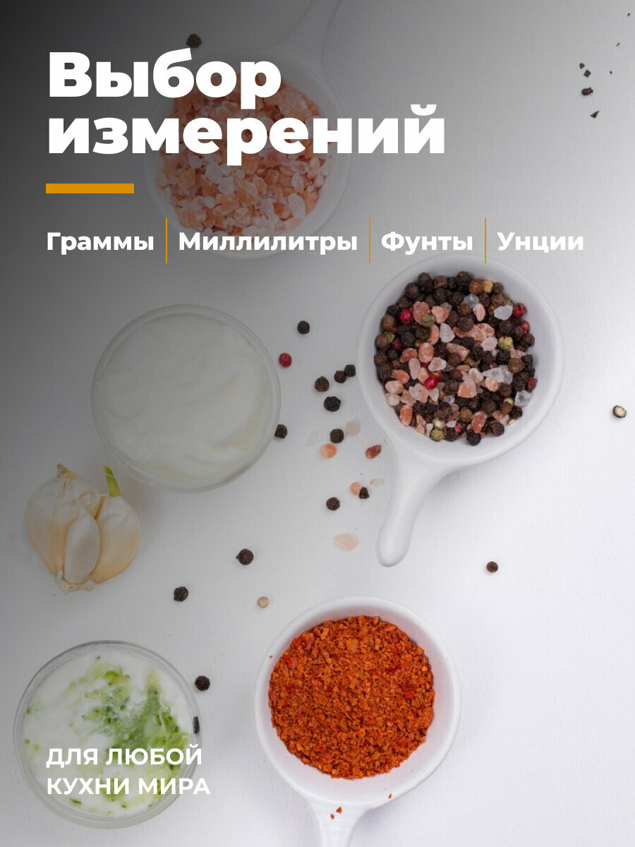 | Единицы измерения | граммы / миллилитры / унции / фунты |