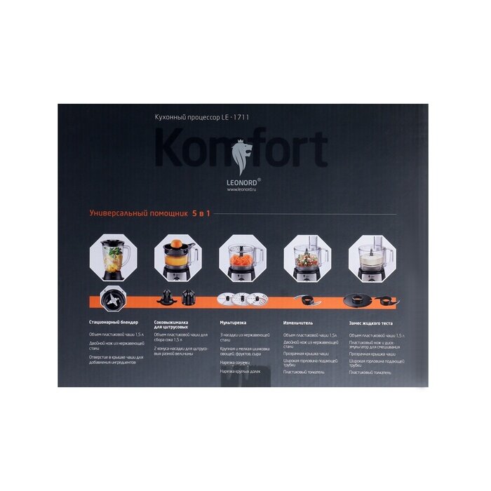 Ниже Вы можете прочитать отзывы на Кухонный процессор Leonord LE-1711, 5в1 (105583), ознакомится с подробными характеристиками, посмотреть интересные обзоры и фотографии на Кухонный процессор Leonord LE-1711, 5в1 (105583).