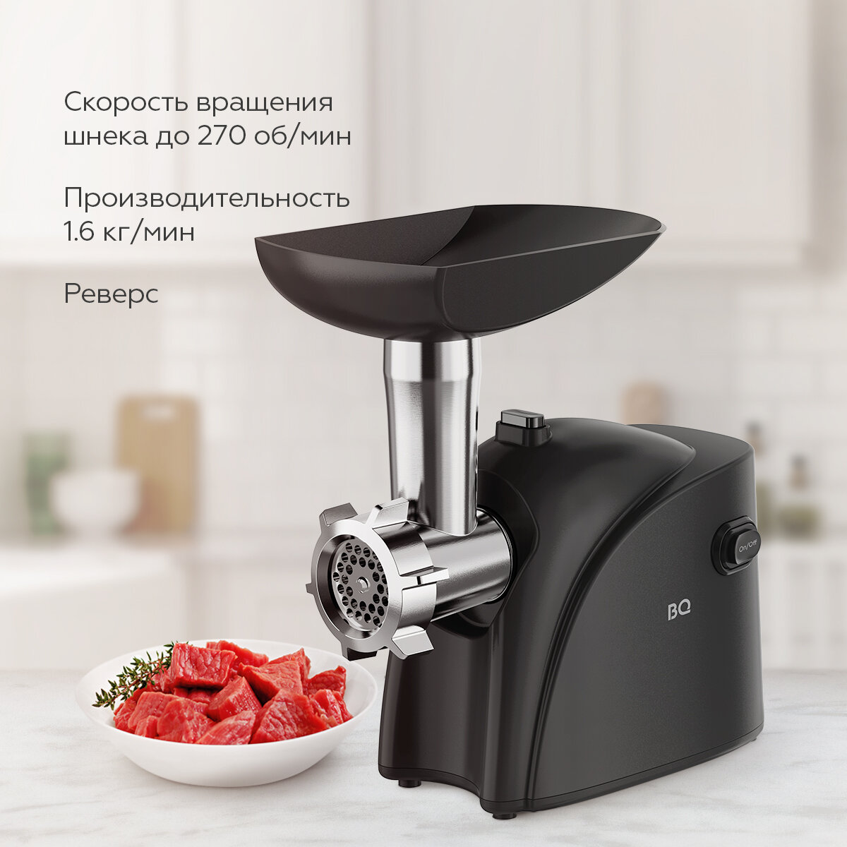 Мясорубка электрическая BQ MG2000 / Мощность 1400 Вт / Производительность 1.6 кг/мин / Реверс