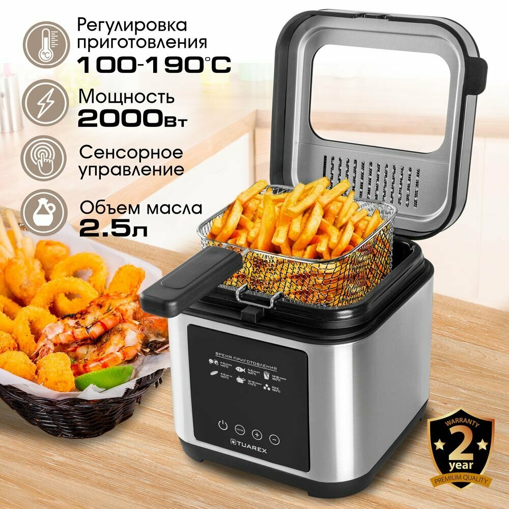 Фритюрница электрическая TUAREX AG-3501, 2000 Вт, 2,5 литра, съёмная крышка, защита о перегрева интересное: