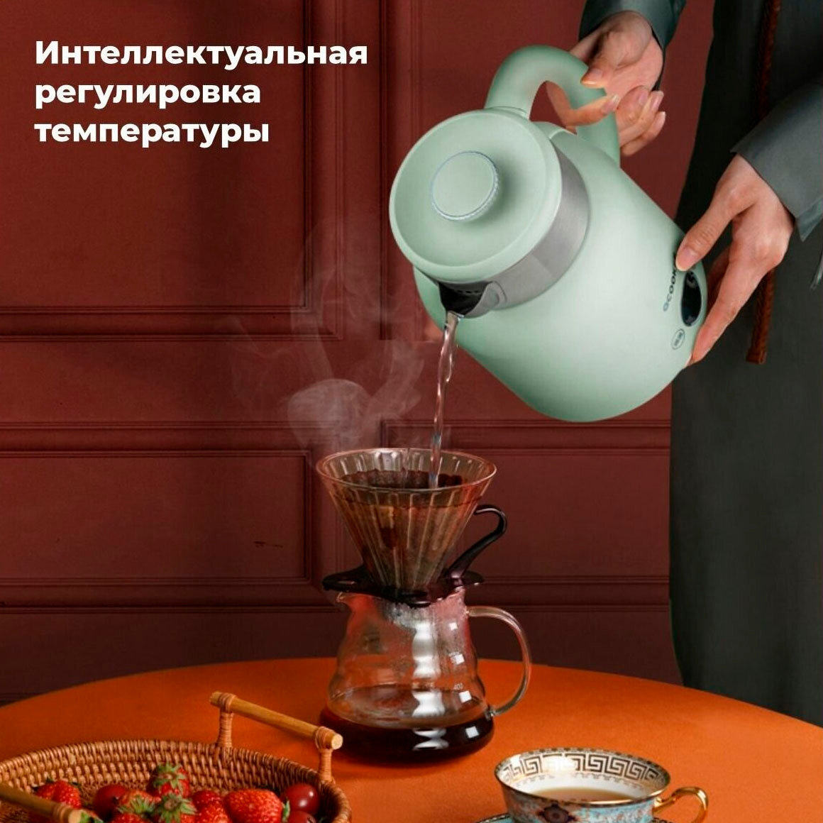 Электрочайник Xiaomi CR-SH1501, 1.5L, зеленый, 6 режимов нагрева, скрытый нагревательный элемент, защита от перегрева EU
