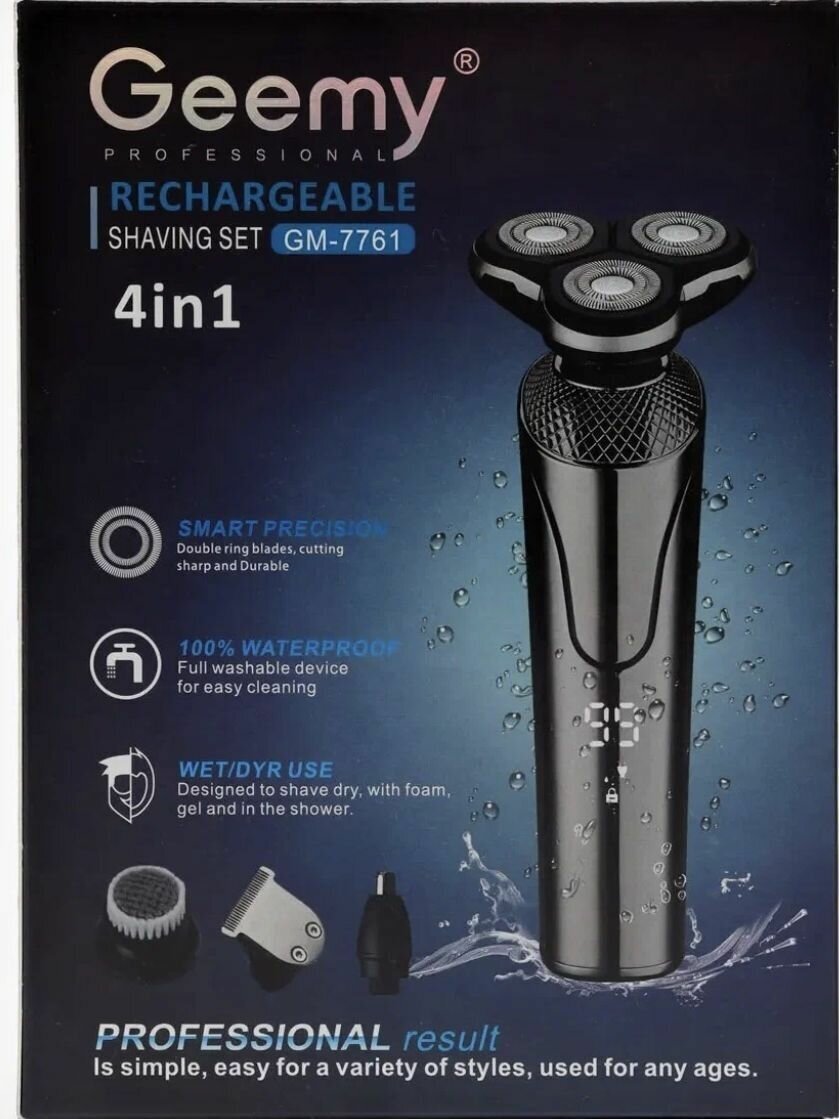 | Дополнительная информация | Встречайте! Влагостойкая электробритва "GM-7761". От уверенного, но известного в малых кругах бренда, специализирующего на бытовой технике, изготовителя "Geemy". |