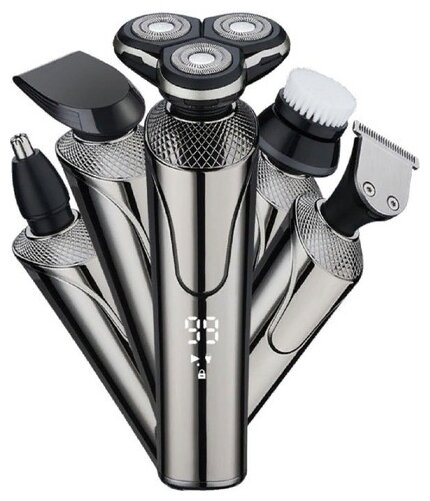 | Подробная комплектация | 1. Электробритва с 5-ю плавающими 4D-головками; 2. Триммер для носа и ушей; 3. Машинка для стрижки волос, бороды и усов с 3-мя насадками (3/6/9 мм); 4. Пилинг-щетка для очистки лица; 5. USB-кабель; 6. Кисточка для чистки насадок,масло. |