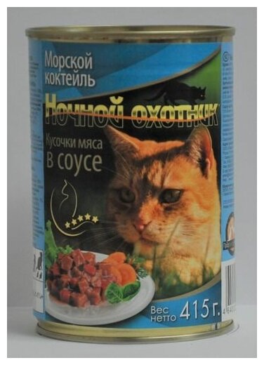 Ночной охотник Консервы для кошек морской коктейль в соусе, 415г 0.415 кг