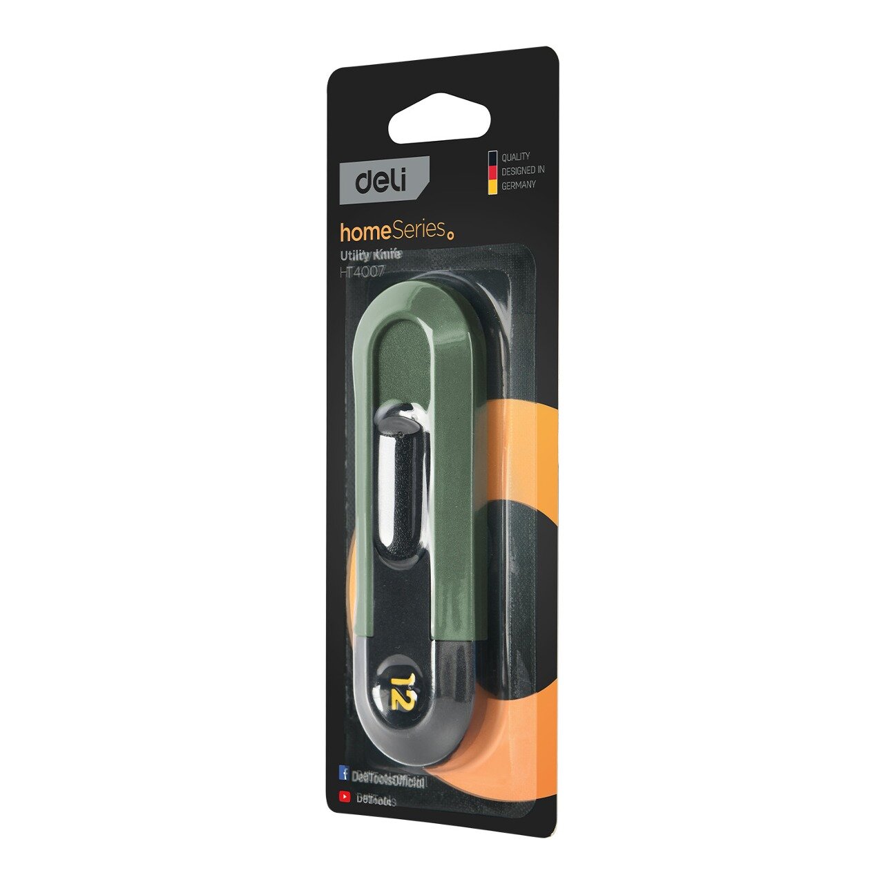 Нож технический строительный канцелярский DELI Home Series Green HT4007L ширина лезвия 12мм, эксклюзивный дизайн, корпус из высококачественного соф